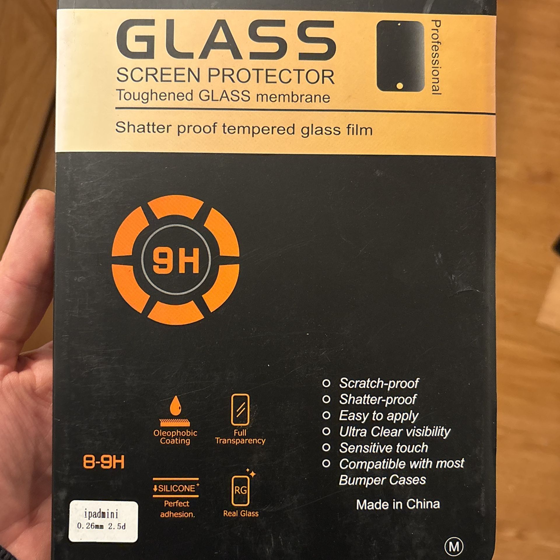 Shatter and Scratch proof tempered glass film for iPad mini Easily applied and touch sensitive with super strong 9-H hardness. Ultra low reflection with fingerprint resistance Comes with cleaning cloth Dust remover/ Screen Wipe Tempered Glass film