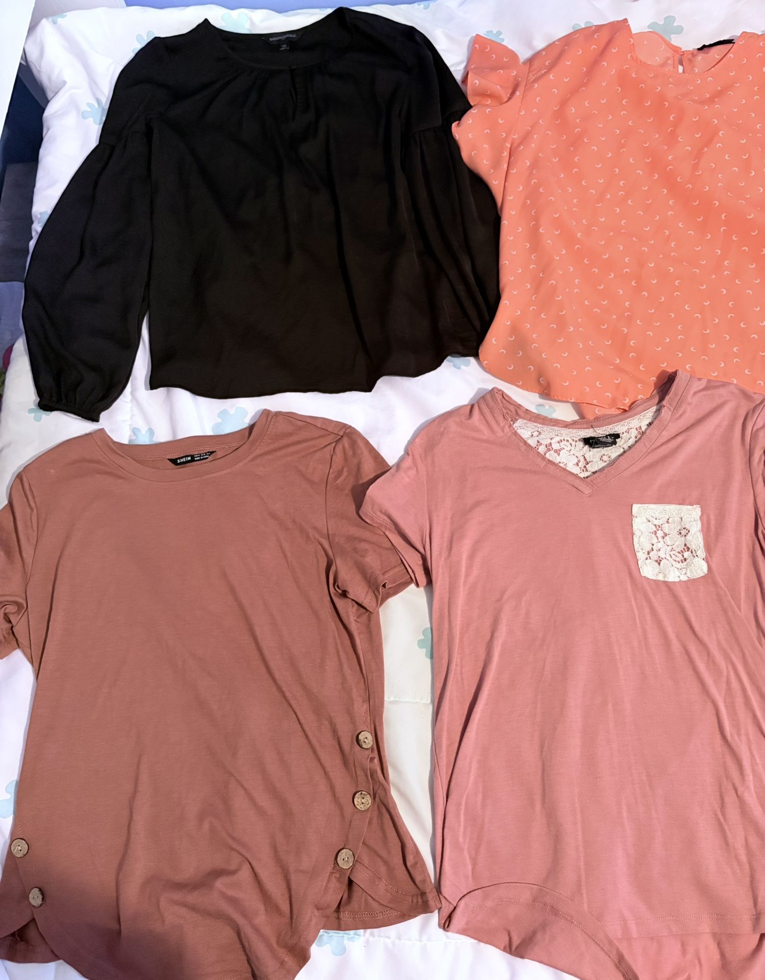 23 women shirts size medium. Brands vary from loft, gap, shein, and time and tru. Shirts are in good condition. Want to sell all together. Great for resellers.