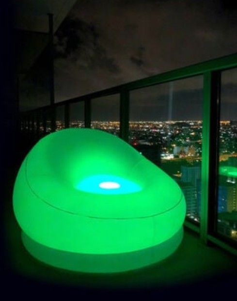 Green inflatable LED block chair 40" X 42" X 28" Brand new, open box, never used Heavy duty PVC vinyl, holds up to 250 pounds Remote (controls the lights on the chair) is included Remote requires CR2025 battery {included} Chair light requires 3 AAA batteries {not included}