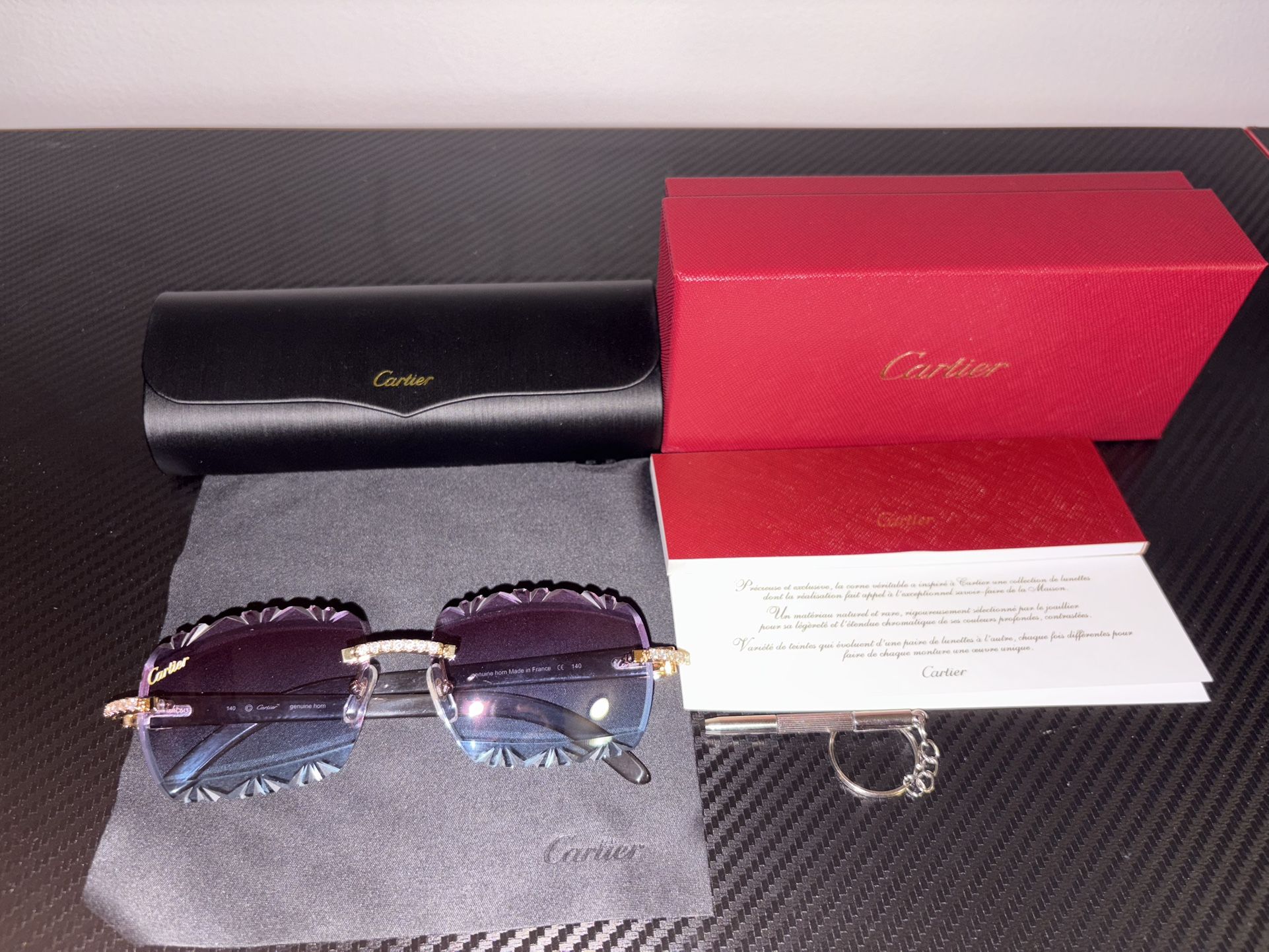 Cartier buffs with black sticks, diamonds, and blue/purple lenses Mint condition Serious inquiries only