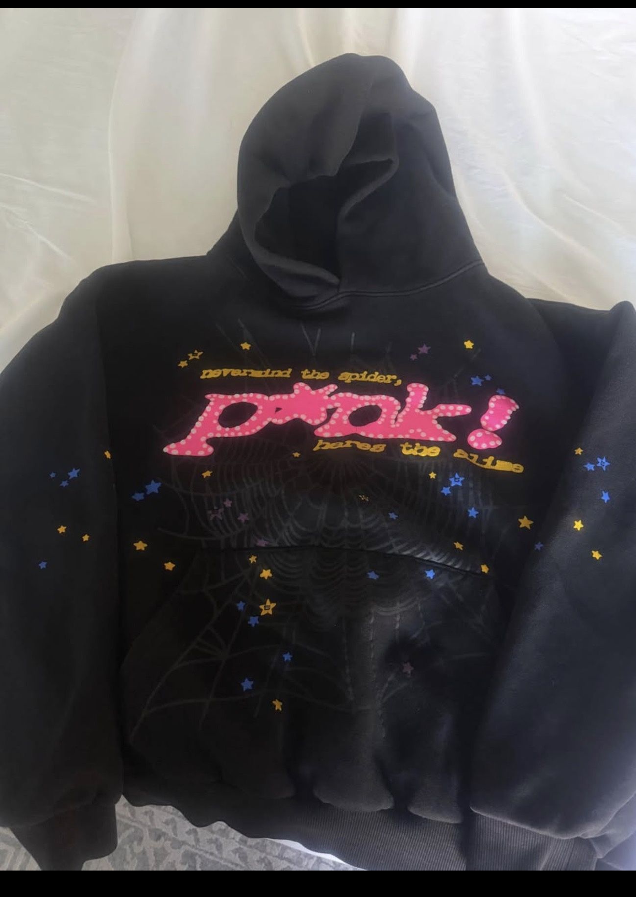 Designed by the rapper and fashion icon Young Thug, the Sp5der OG Rhinestone Logo Hoodie.