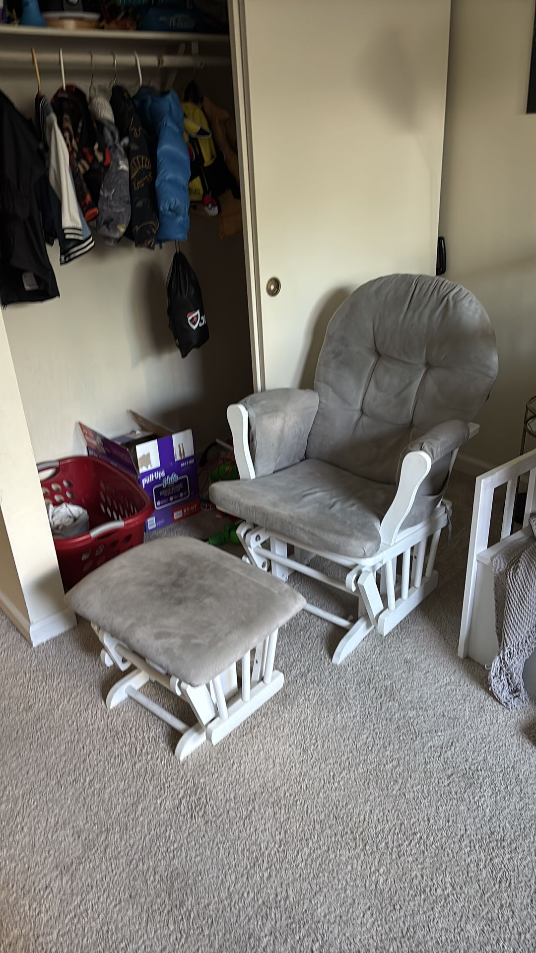 Rocking chair. Decent condition, no longer using it as our kid is getting older. Cushions are machine washable so very easy to clean