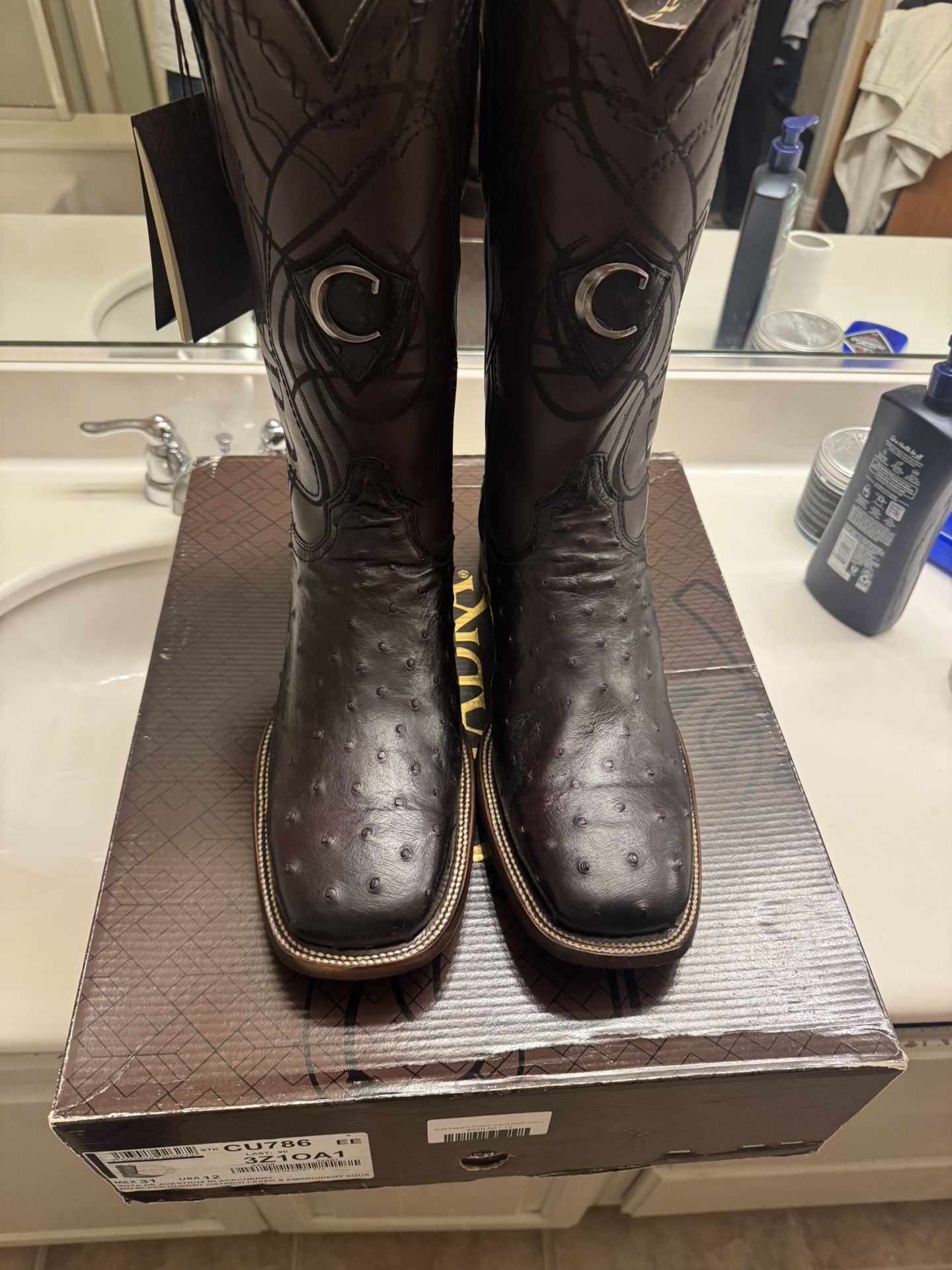 Brand new sz 12 color black cherry ostrich $400firm located in East Las Vegas