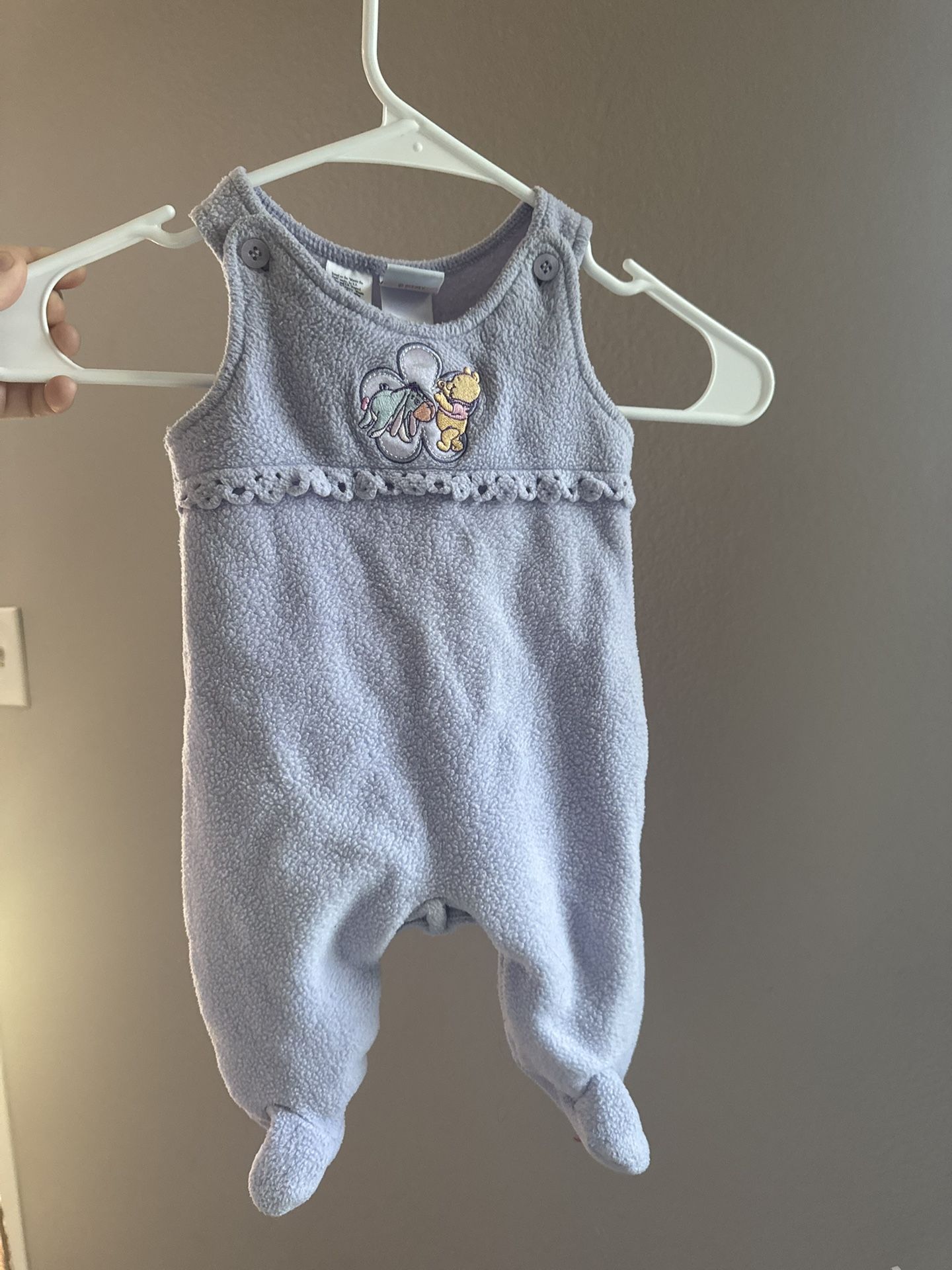 0/3 months , does have a dirt stain but I’d washable she is in good condition