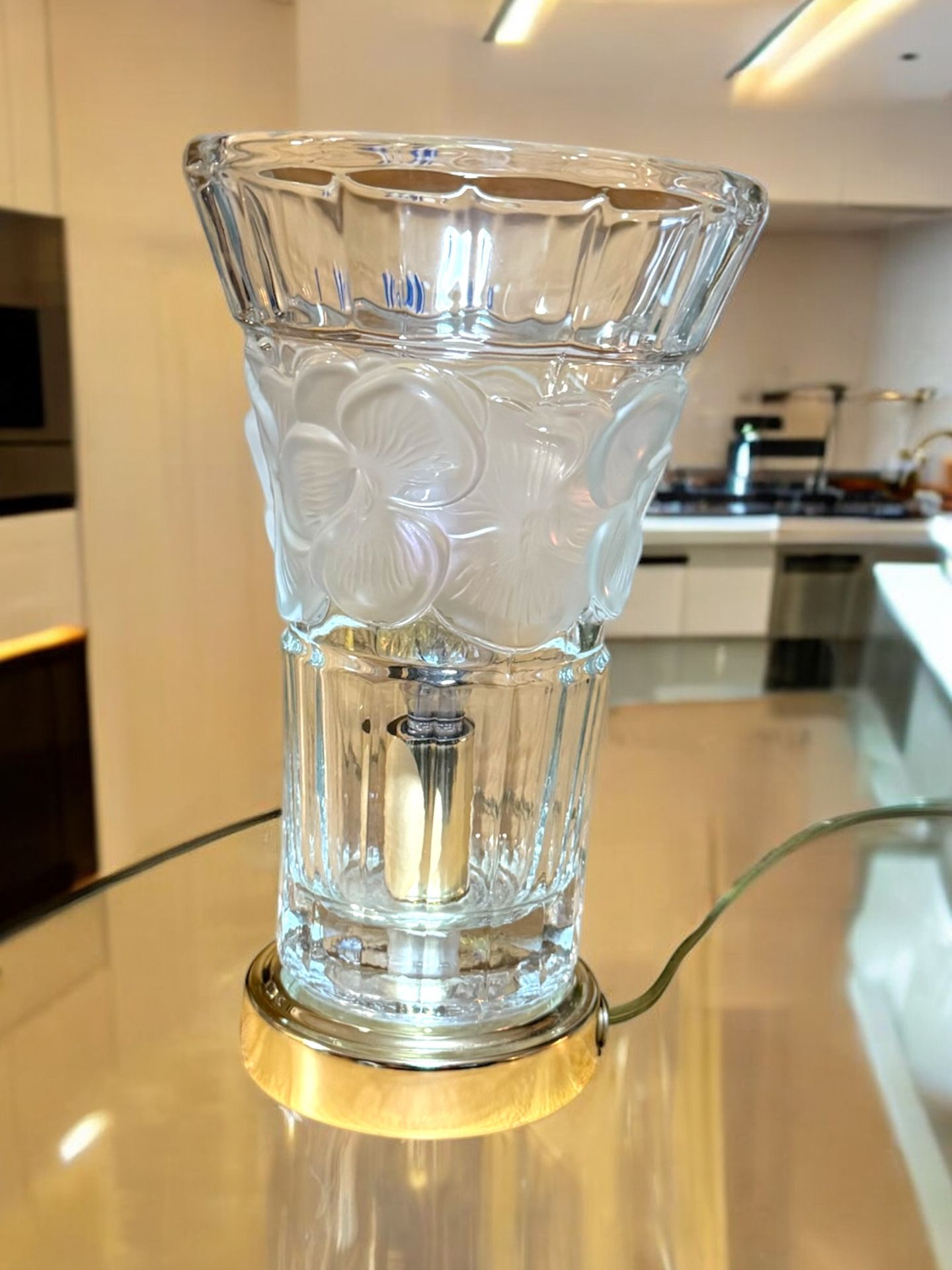Infuse your space with a touch of tropical elegance with this vintage crystal vase. Its frosted hibiscus pattern captures the essence of a boho paradise, making it a stunning centerpiece for any room. The intricate detailing and versatile design allow it to complement a variety of decor styles, from eclectic to classic. Whether filled with vibrant blooms or standing alone, this vase adds a unique charm to your home. This pre-owned piece carries a history that enhances its character and appeal. Keywords: vintage vase, crystal vase, tropical decor, boho style, frosted hibiscus, intricate detailing, versatile design, home decor, centerpiece, pre-owned vase, unique charm, floral pattern, decorative vase, bohemian decor, vintage home accessory. Brand: Unbranded Type: Vase Material: Crystal Theme: Tropical, Boho Pattern: Frosted Hibiscus Style: Vintage Features: Intricate Detailing, Versatile Design Vintage