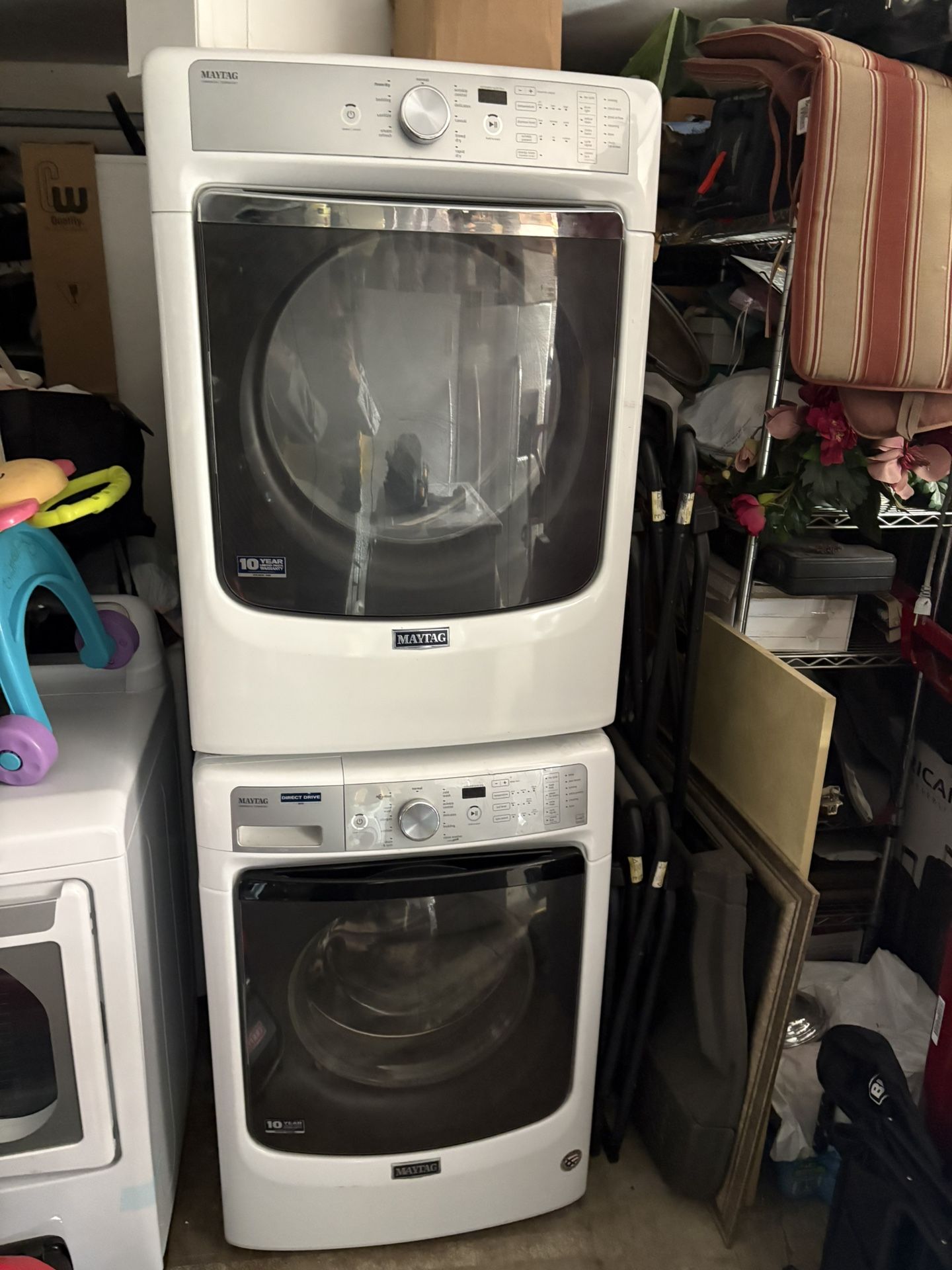 Maytag Stackable Washer and gas dryer Excellent working condition Heavy duty Commercial quality W27 D31.5 H76 Washer 4.5 cu ft Dryer 7.4 cu ft 3 months warranty parts and labor only I can accommodate delivery within the area