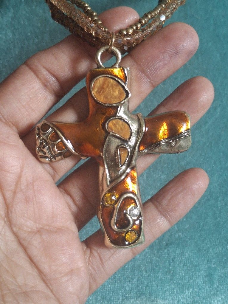 Cross Pendant Beaded Layered Necklace