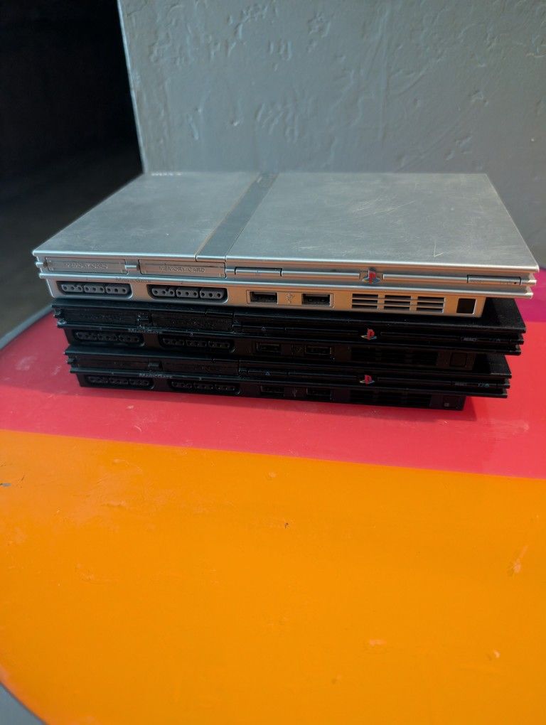 Selling parts only Sony PlayStation 2 slim console the silver one has been tested only plays games certain time depending on how the https://offerup.com/redirect/?o=ZGlzYy5PbmU= will turn on but disc won't read other and other one will attempt to power on but will blink red.If anyone is interested feel free to message me.