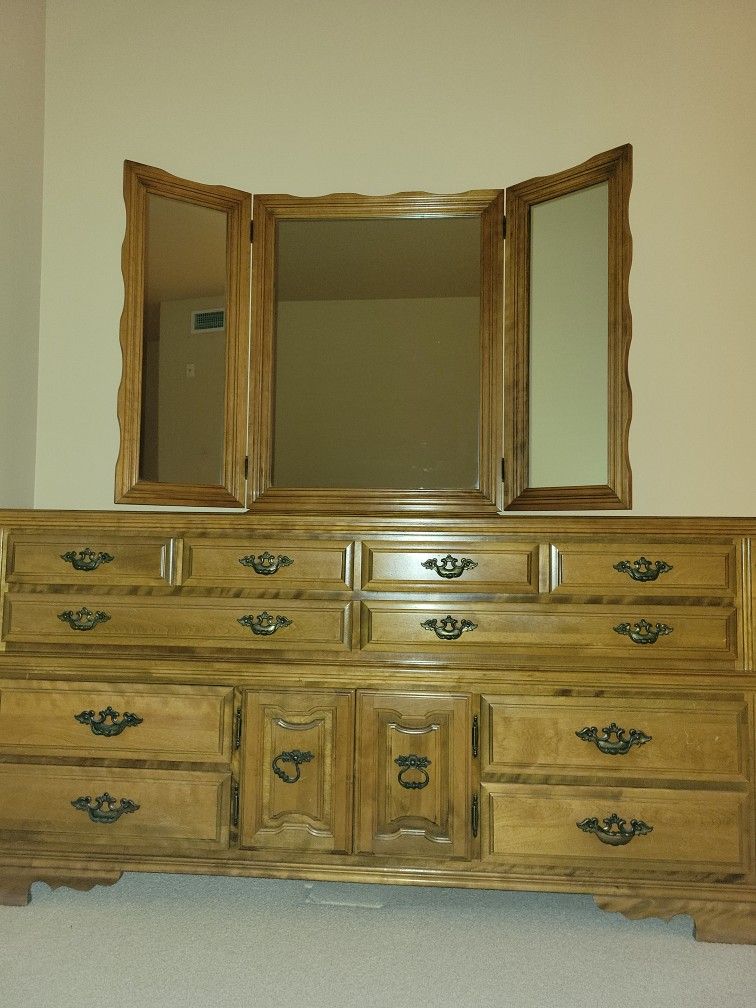 $400 for Dresser 6ft long, 6ft tall w/mirror, 1ft 6 1/2 wide. $50 for Night stand 2ft 2in long, 2ft 3in tall 1ft 5in wide. If you buy both $400 total.