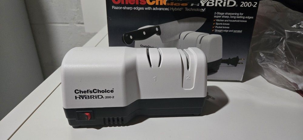 Used once, in box Chef's choice electric knife sharperner.