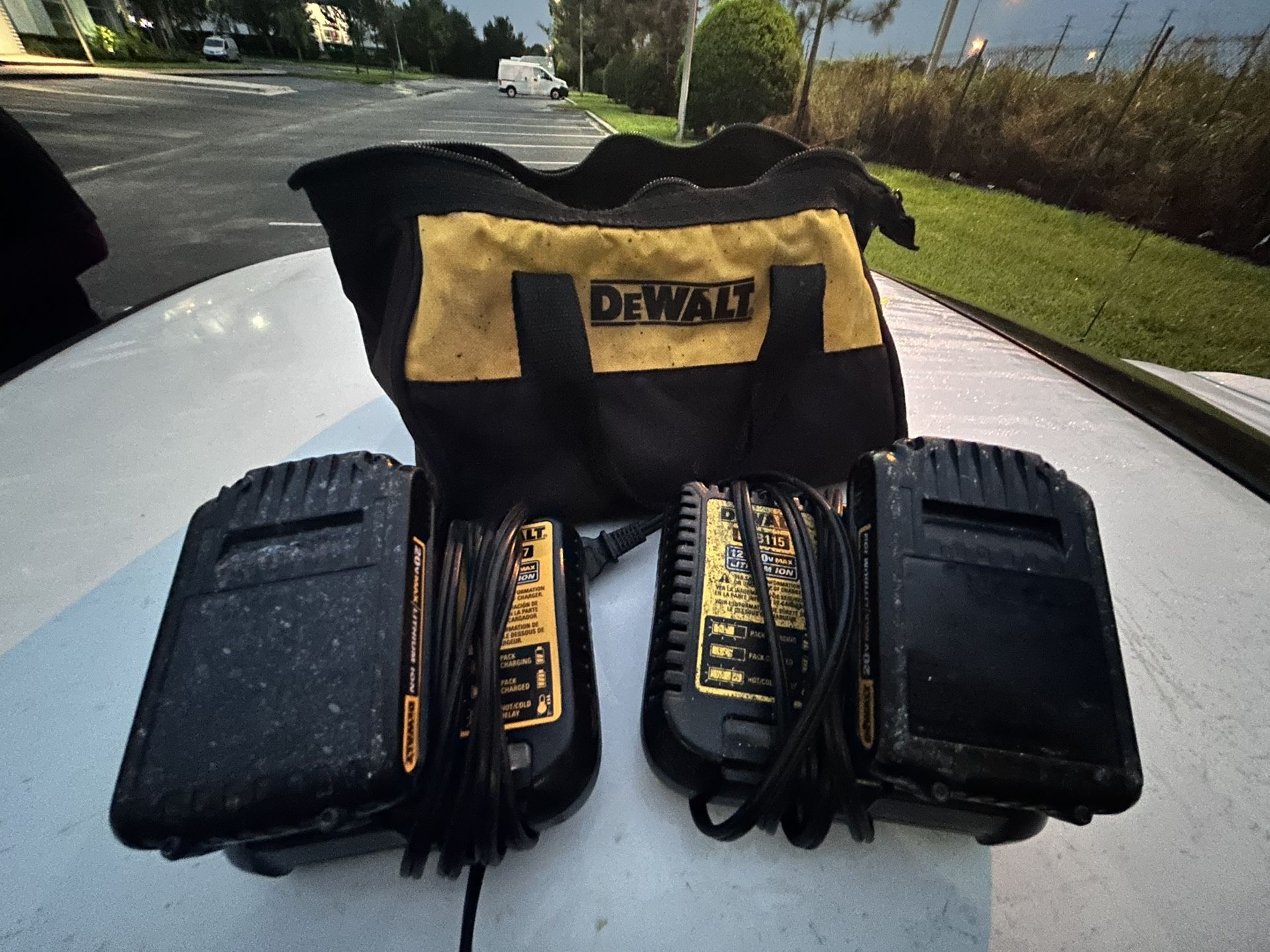 2 dewalt batteries with the chargers + a dewalt carrying bag
