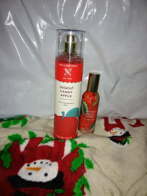 Like new Bath & Body Works fall scent set of a Coconut Candy Apple Fine Fragrance Mist and a Spiced Apple Toddy Room Spray! Both items have been sprayed at least once to try the smell, but are otherwise brand new. The mist is a full-sized, 8 oz product, and so is the room spray, at 1.5 oz. The scent notes are as follows: Coconut Candy Apple: Candied Red Apple, Shredded Coconut, and Vanilla Spice. Spiced Apple Toddy: Warm Apple Brandy, Spiced Plum, Tart Cranberry, and Cinnamon Stick. Comes from a smoke-free home.