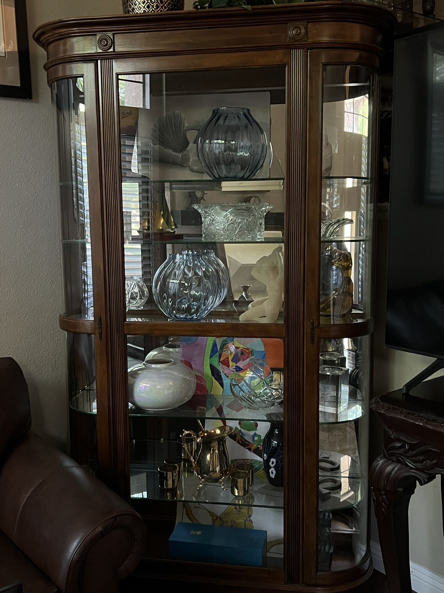 Beautiful, fine curio cabinet. Perfect condition. Detailed wood design.