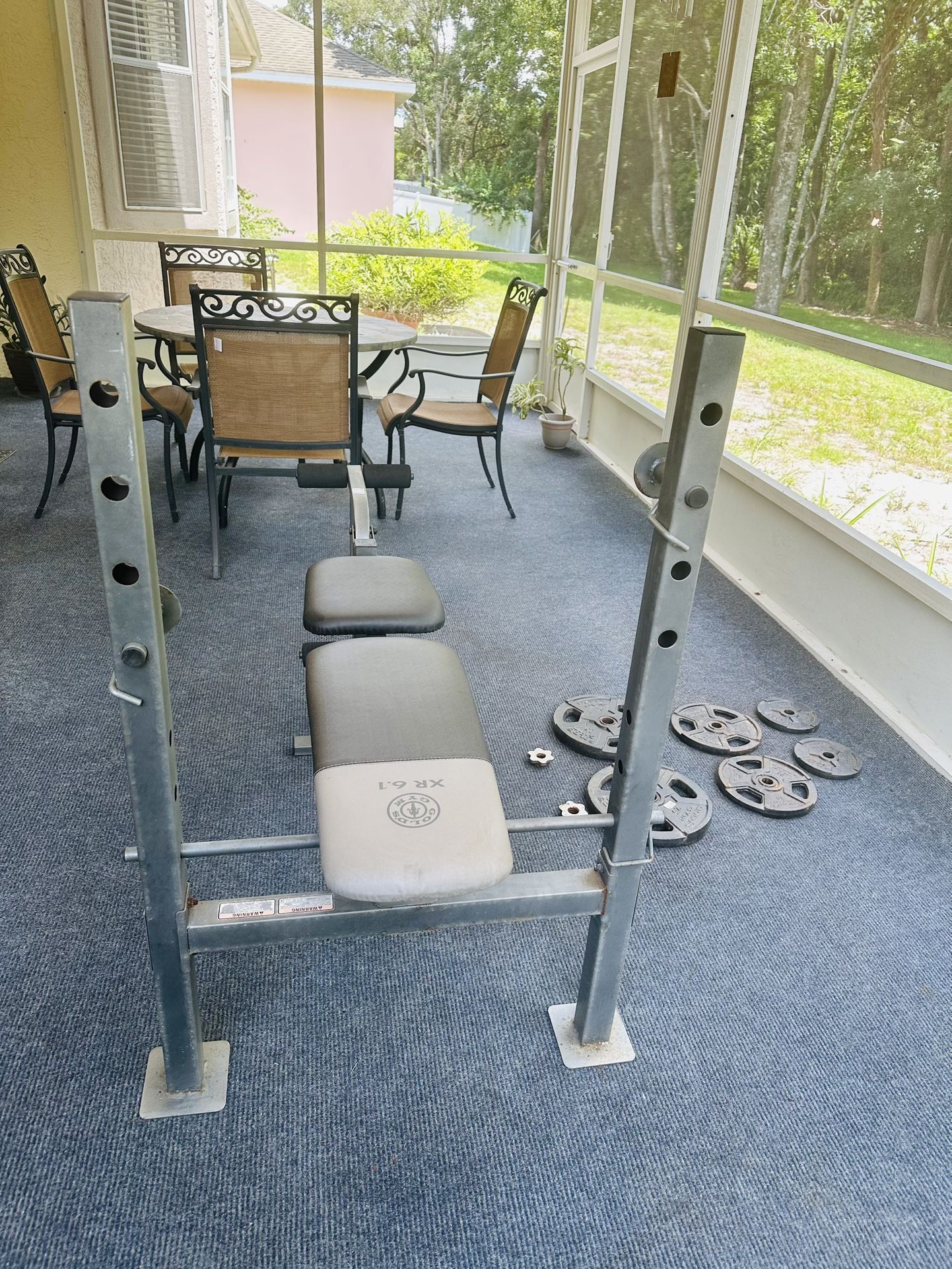 Gold's Gym XR 6.1 Multi-Position Weight Bench, Leg Developer and Cast Iron Weight Set included