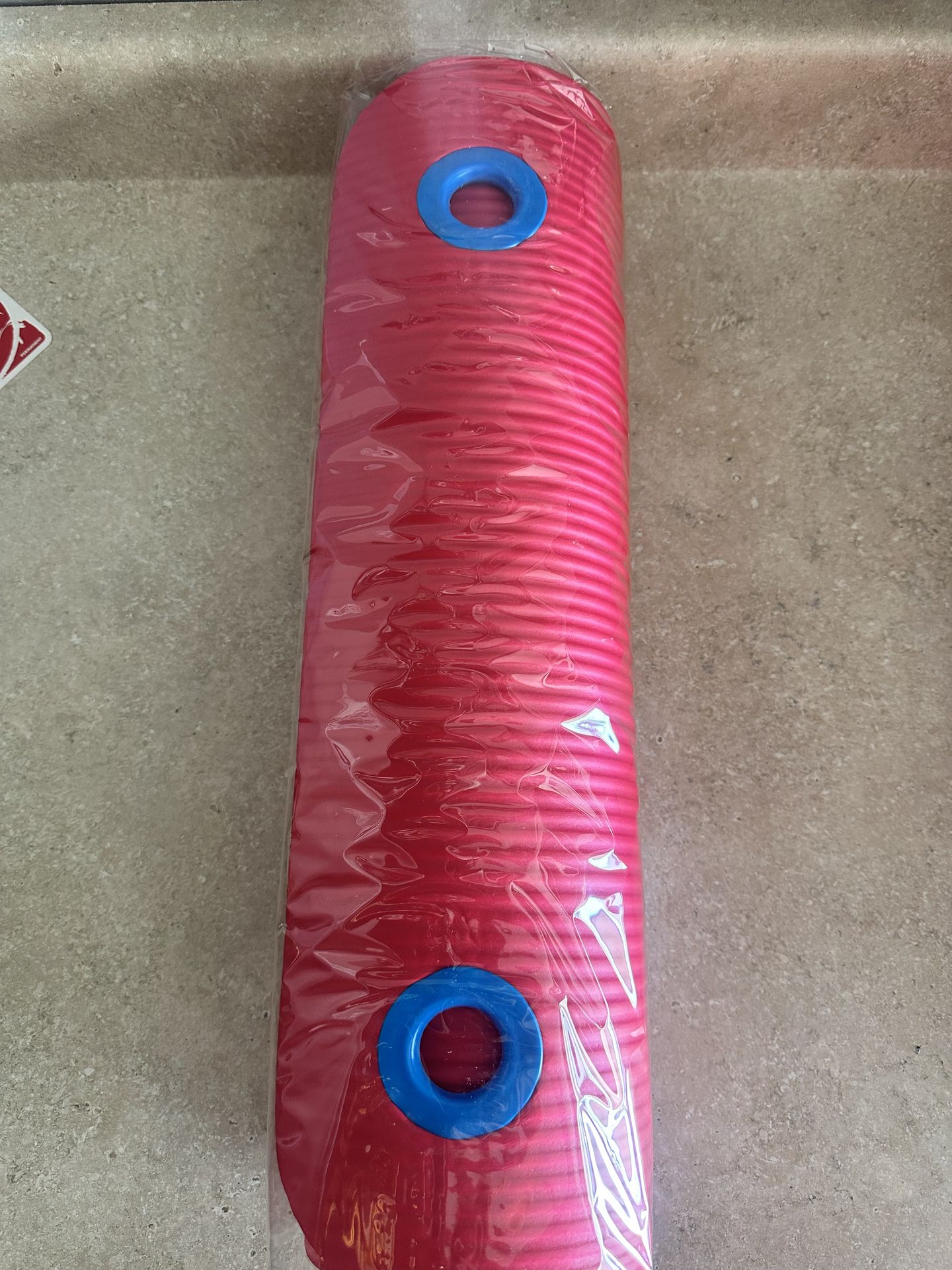 48” x 20.5” x 3/8” workout mat. This mat is still in its original packaging with product numbers. Perfect for smaller spaces as the grommets let you hang in from the wall. New on the BSN website they run $59.