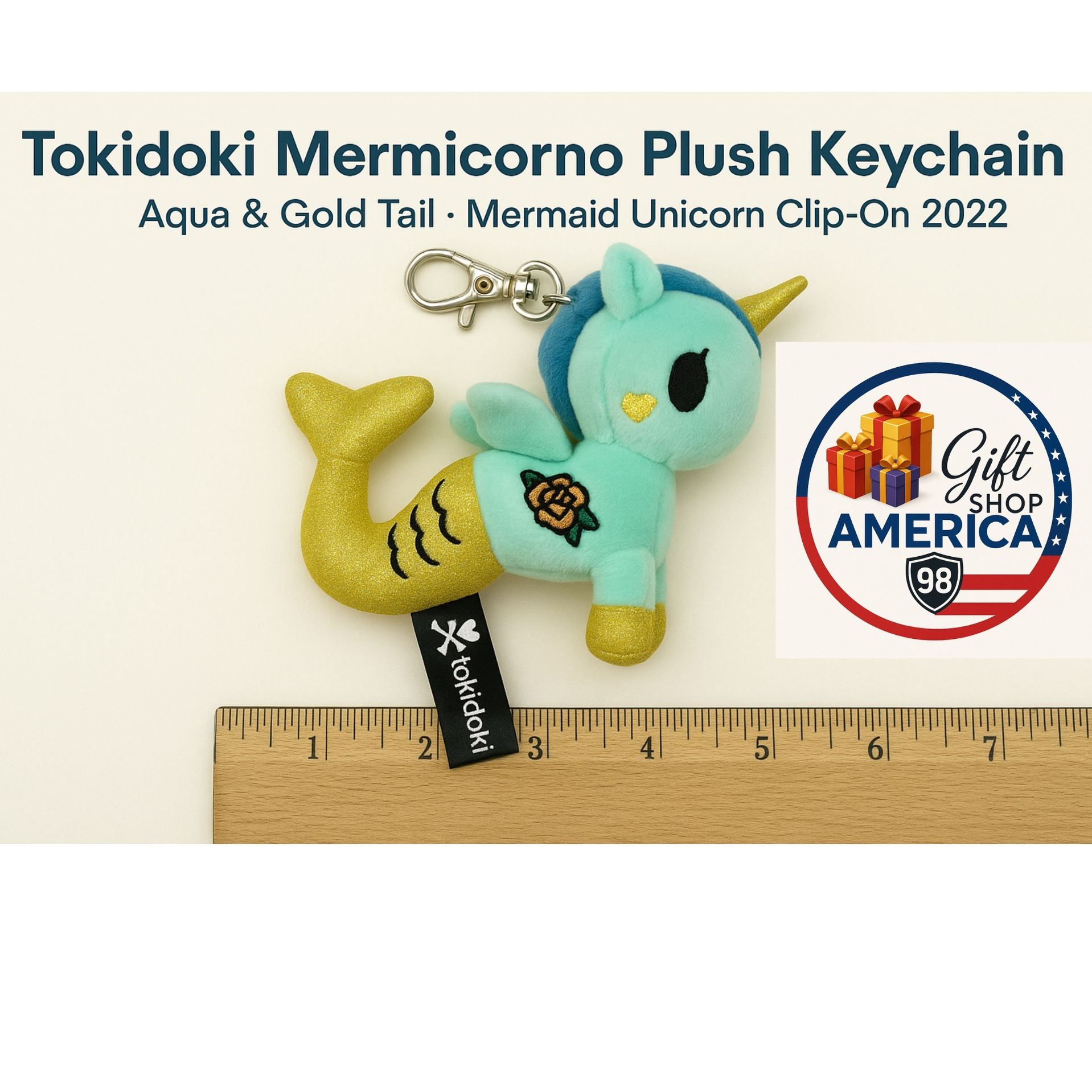 Tokidoki Mermicorno Plush Keychain – Aqua & Gold Tail – Mermaid Unicorn Clip-On 2022 B7