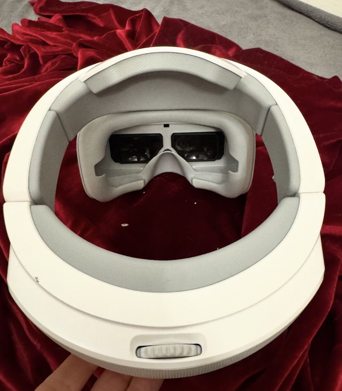 DJI FPV goggles in very clean condition. Fully functional with comfortable padding and adjustable head strap. Lenses are clean overall with minor haze that may clear with normal use or gentle cleaning. Great for FPV drone flying or immersive viewing. Part of a larger, well-maintained electronics collection.