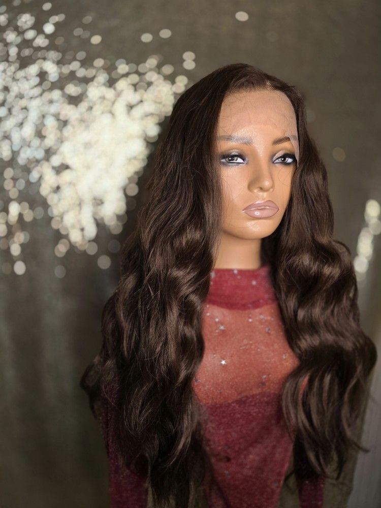 13x4 Lace Front Synthetic Hair Wig Chocolate Brown Wavy 26"
