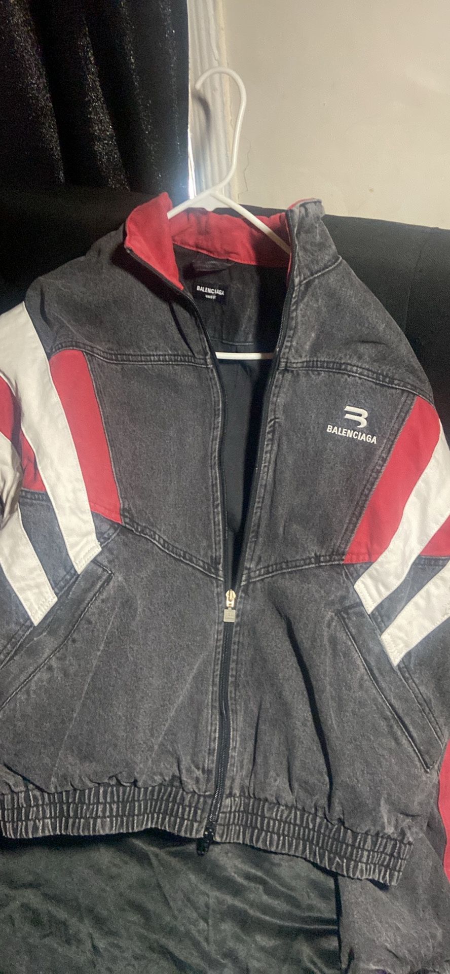 Selling a Size L, Balenciaga Denim Track Jacket. Ready for pick up. Price firm. Will reduce price by 100 dollars if you pick up. Selling my exes stuff he left at my house since we broke up … priced to sell!