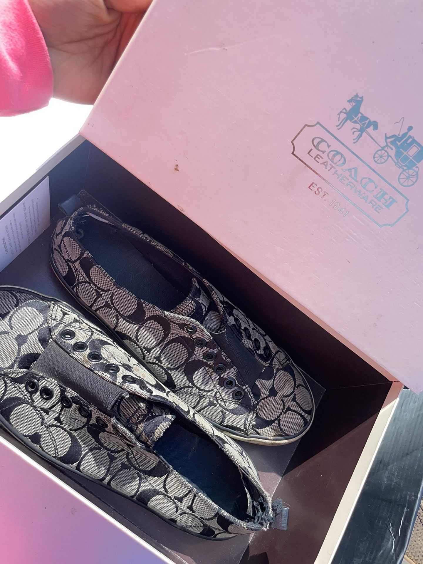 Real Monogram Coach Bev Signature Vintage Laceless Sneaker Elastic Band across the black and grey details