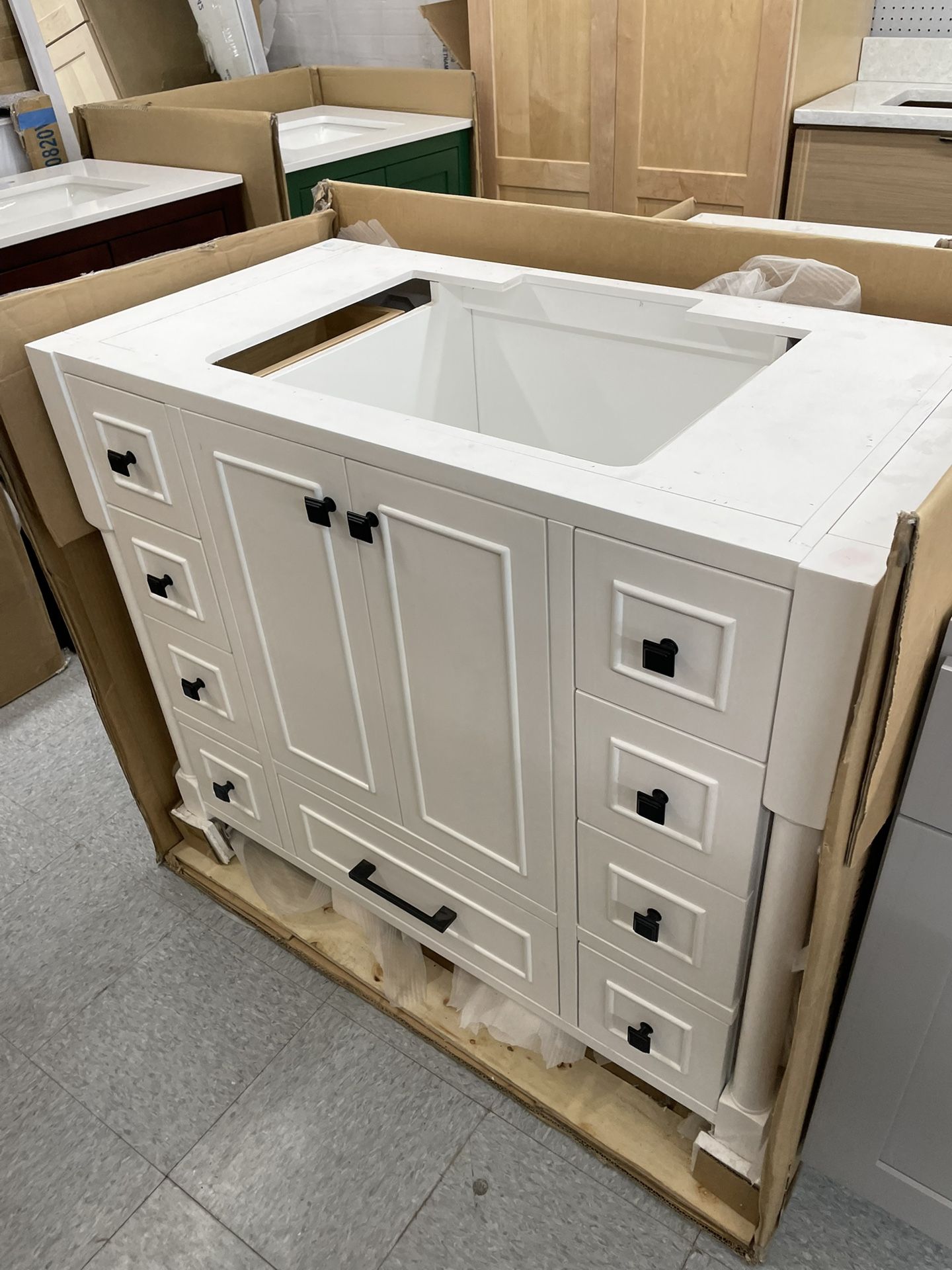 Bathroom vanity cabinet 42” full mango Quartz top with sink And Backsplash