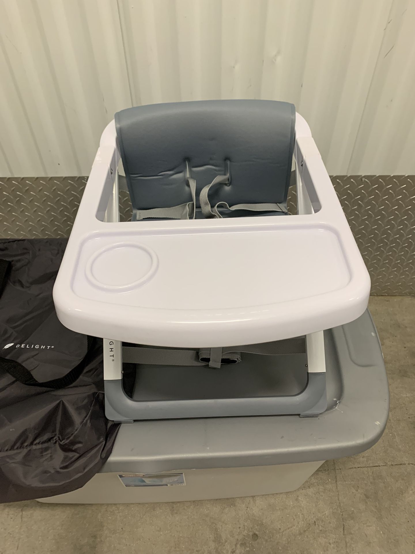 Clean very gently used baby delight high chair perfect for travel or on the go , folds flat no disassembling required very light weight and comes with convenient travel bag. From a non smoking pet free home