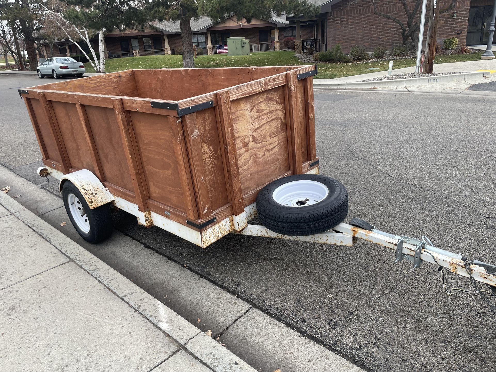 Custom Wood Wall Trailer for sale. Each of the sides can come off, held together by bolts - really cool design. Let me know if you'd like to take a look at it or have any questions. I will answer my phone/call back quickly and texting will be fast. (contact info removed) Measurements: 117" L x 58.5" W x 57.5" H