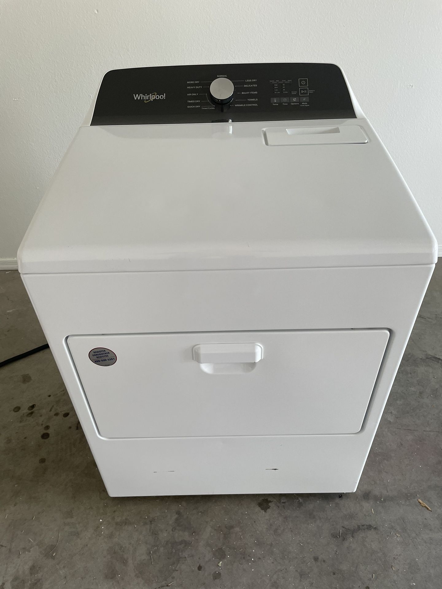 Whirlpool 7.0 Cu. Ft. Top Load Electric Moisture Sensing Dryer. Like new, 1 year old, been in storage 7 mos. Some cosmetic blemishes due to moving.