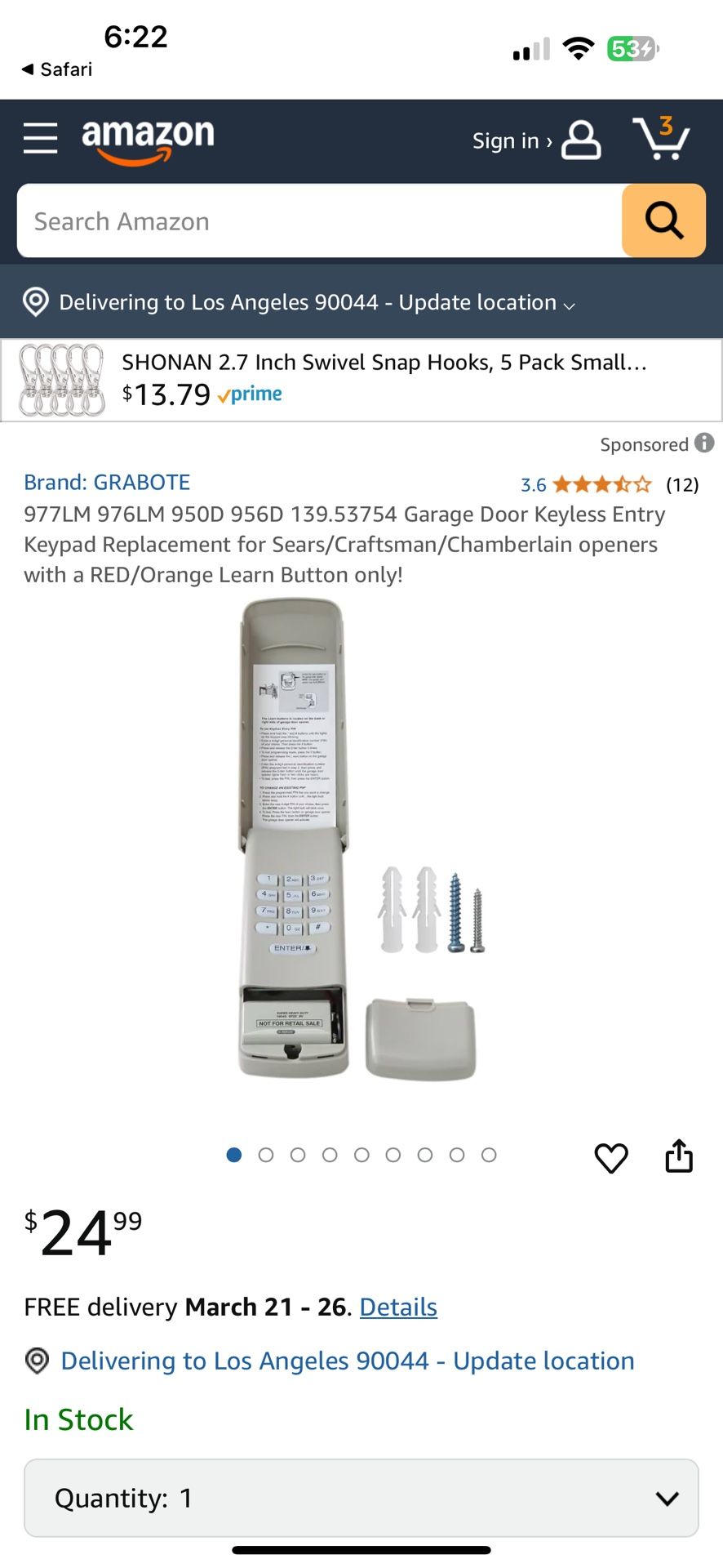 977LM 976LM 950D 956D 139.53754 Garage Door Keyless Entry Keypad Replacement for Sears/Craftsman/Chamberlain openers with a RED/Orange Learn Button only! Brand new.