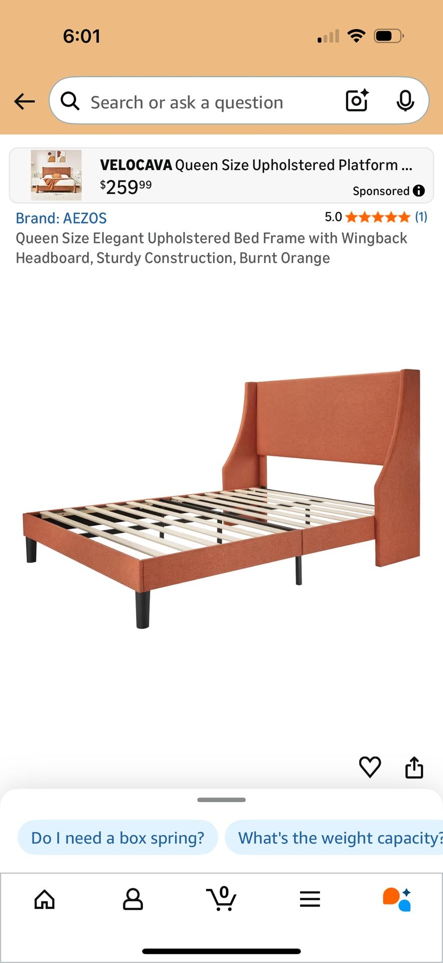 Queen Size Burnt Orange Bed Frame