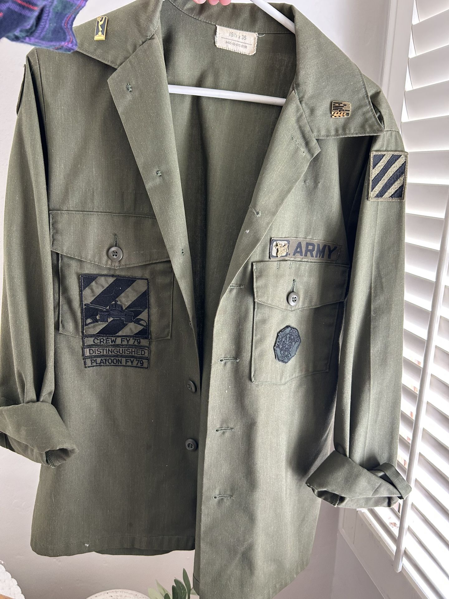 Original Utility Shirt Jacket US Army 1960-70’s Master Gunner Patch Platoon Fatigue Coat Military Collectible Original War Retro Antique