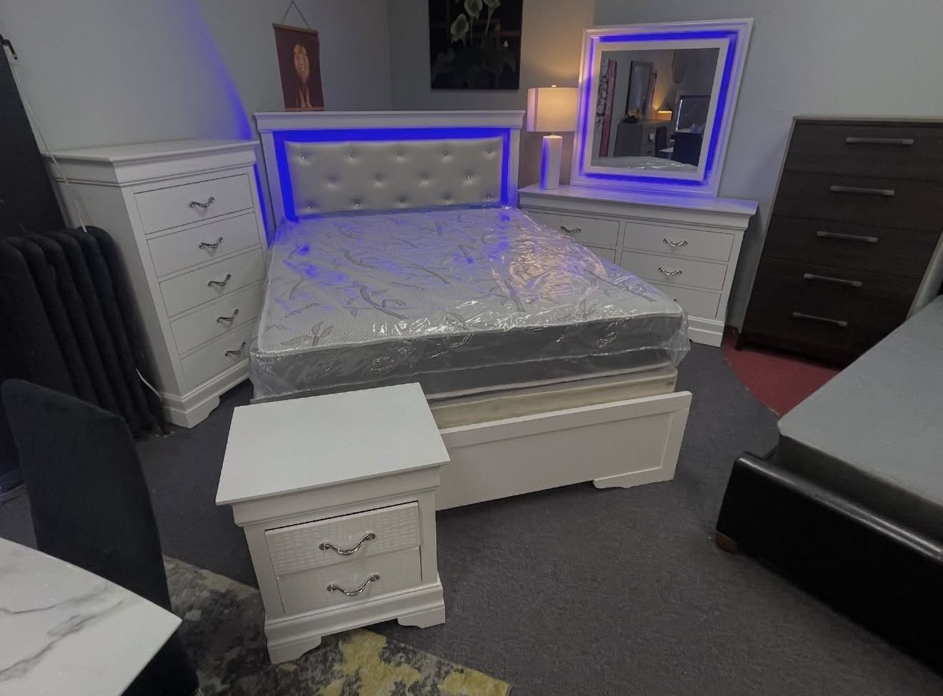 π₯ MODERN LED BEDROOM SET ON SALE β JUST $998! π₯β€οΈ Upgrade your bedroom with this stunning modern bedroom set featuring a tufted headboard with LED accent lighting for a sleek, luxury look. β Includes: β’ Queen LED Bed β’ Dresser β’ Mirror β’ Nightstand β¨ Features: β’ Built-in LED lights in headboard & mirror β’ Modern white finish β’ Stylish chrome hardware β’ Durable construction β’ Mattress available π₯ ON SALE ONLY $998 π Fast delivery available π³ Easy financing β No credit needed π Alex Furniture & Mattress 149-26 Jamaica Ave. Jamaica, NY 11435 π 718-523-1310 π Limited stock β first come, first served!