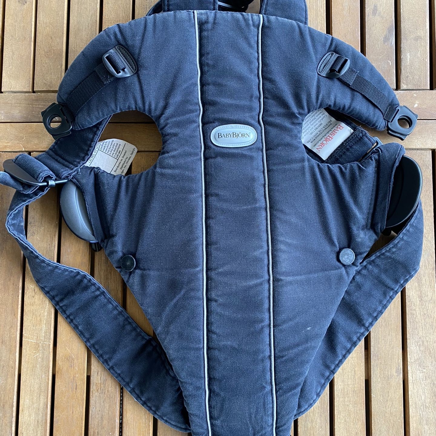 Here is my BabyBjorn baby carrier. This thing is an incredible life saver for any parent. Put it on, snap the baby in (forward facing or rear facing), and do whatever you need to do. Whether you’re doing dishes, shopping, cleaning, hiking, or just walking around, your baby will be soothed while giving your arms a break. The adjustments are also great for any size adult (large or small, woman or man) and the baby always feels secured in place. I just machine washed the carrier so it should be cleaned and ready for use. It is a little faded from washing it from time to time, but it still functions perfectly. Babies are all grown up so I don’t need it anymore! IGNORE: