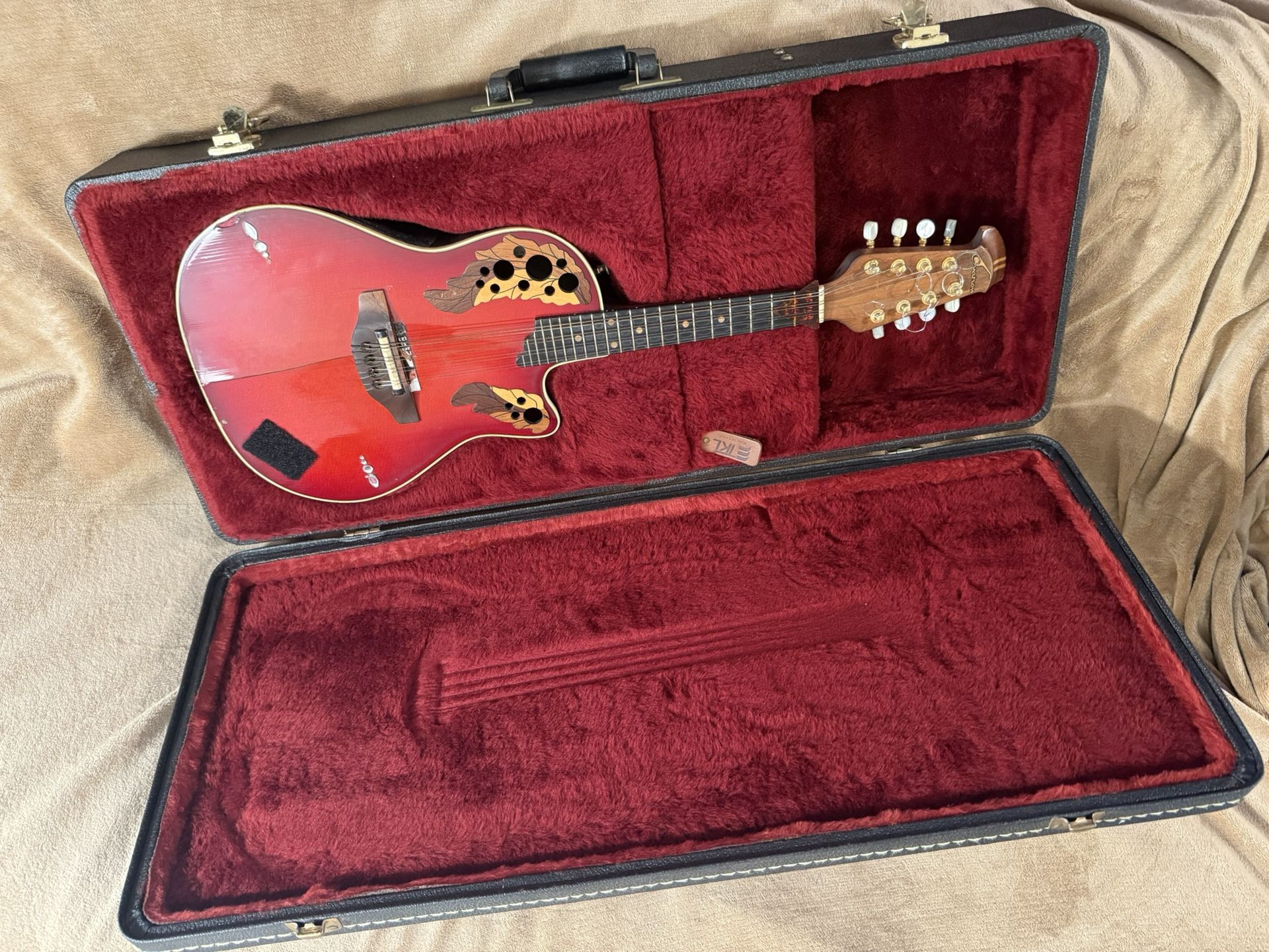 Made in USA – w/ Hard Case Vintage Ovation electric-acoustic mandolin with built-in EQ and pickup system. Serial number confirms that it was Made in USA production. The mandolin is fully functional and produces sound through the electronics, but it does have a few issues to note: • crack on the lower body • EQ / control panel is slightly loose and may need tightening or adjustment • Strings may need replacing Overall condition is around 6-7/10. Includes a very nice hard rectangular case by TKL (Made in Canada) which is high quality and great for protection. Great for a player, collector, or someone looking for a vintage Ovation project instrument. This mandolin retails well over $1200 but I am willing to give you an excellent deal! Please don’t be shy. Send me offers if you really want it just message me. We can work out a deal or if you have more questions about this item, please let me know. Thank you for reading. (: Ignore tags———— Ovation mandolin, vintage Ovation mandolin, Ovation electric mandolin, Ovation acoustic electric mandolin, USA made mandolin, American made mandolin, vintage mandolin, electric acoustic mandolin, Ovation instrument, folk instrument, bluegrass mandolin, mandolin with pickup, mandolin with EQ, vintage folk instrument, mandolin project, collectible mandolin, Ovation guitar company mandolin, vintage music instrument, mandolin with hard case, TKL case, TKL hard case, mandolin case included, stage mandolin, plugged in mandolin, studio mandolin, musician gear, string instrument, acoustic electric instrument, vintage stage instrument, unique mandolin.
