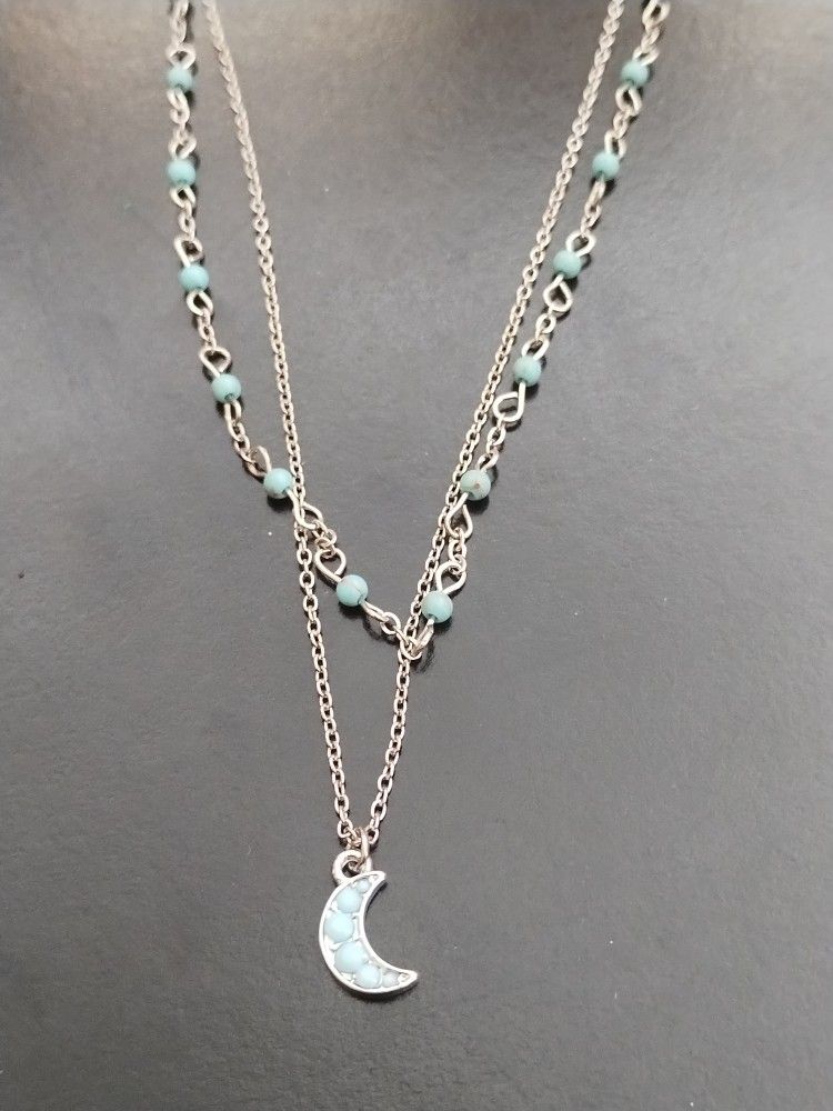 New 2-Layer Teal Stone Moon Necklace