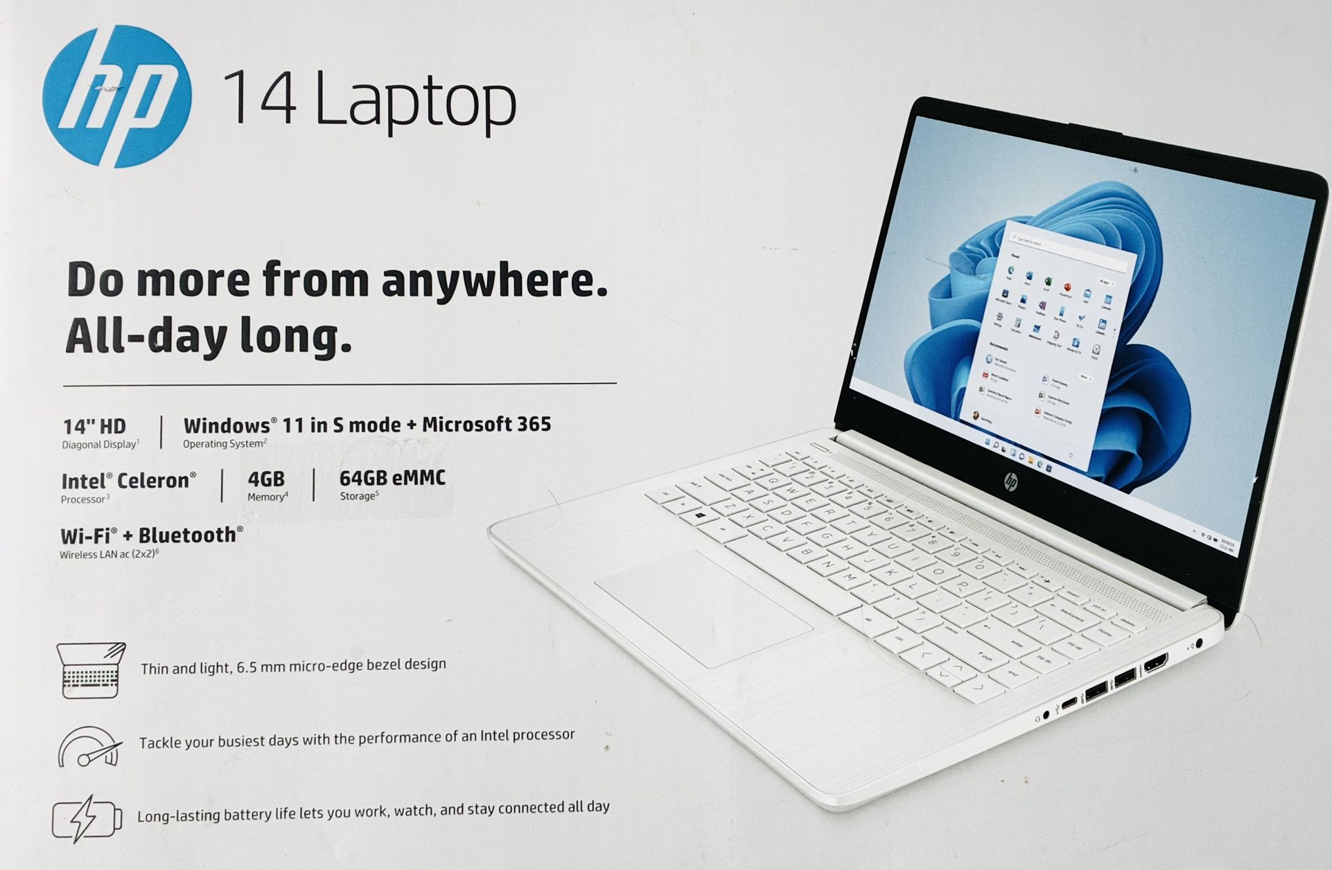 HP - 14" Laptop - Intel Celeron N4120 2019 - 4GB Memory - 64GB eMMC - Snowflake White Model: 14-dq0052dx