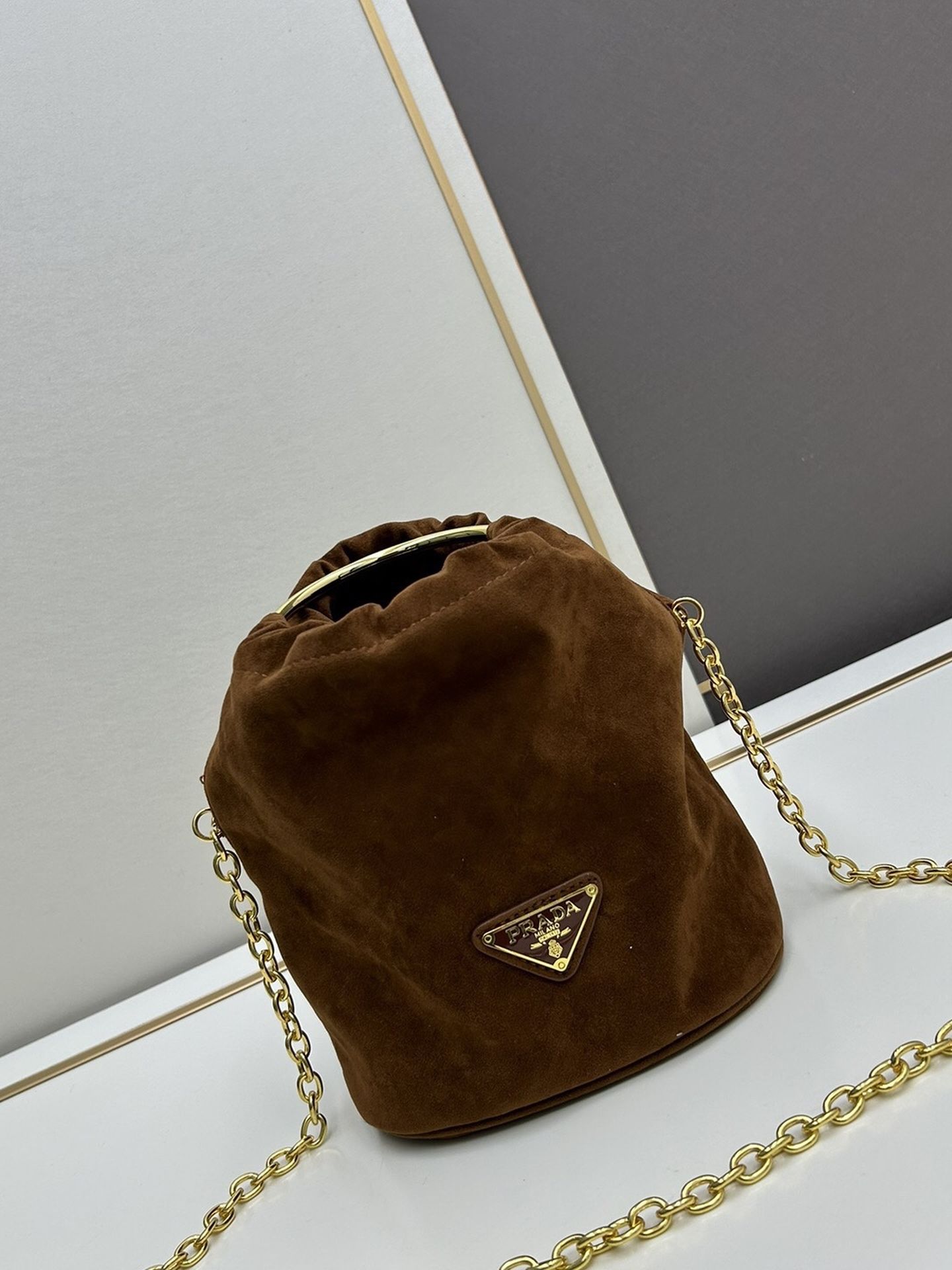 Elaborately made of imported suede Equipped with exquisite metal handles and hardware chains Golden triangle logo Lightweight, easy to wear and easy to match The arbitrariness of different memorization methods and the easy-goingness that can be placed anywhere Carry the temperamental little sister