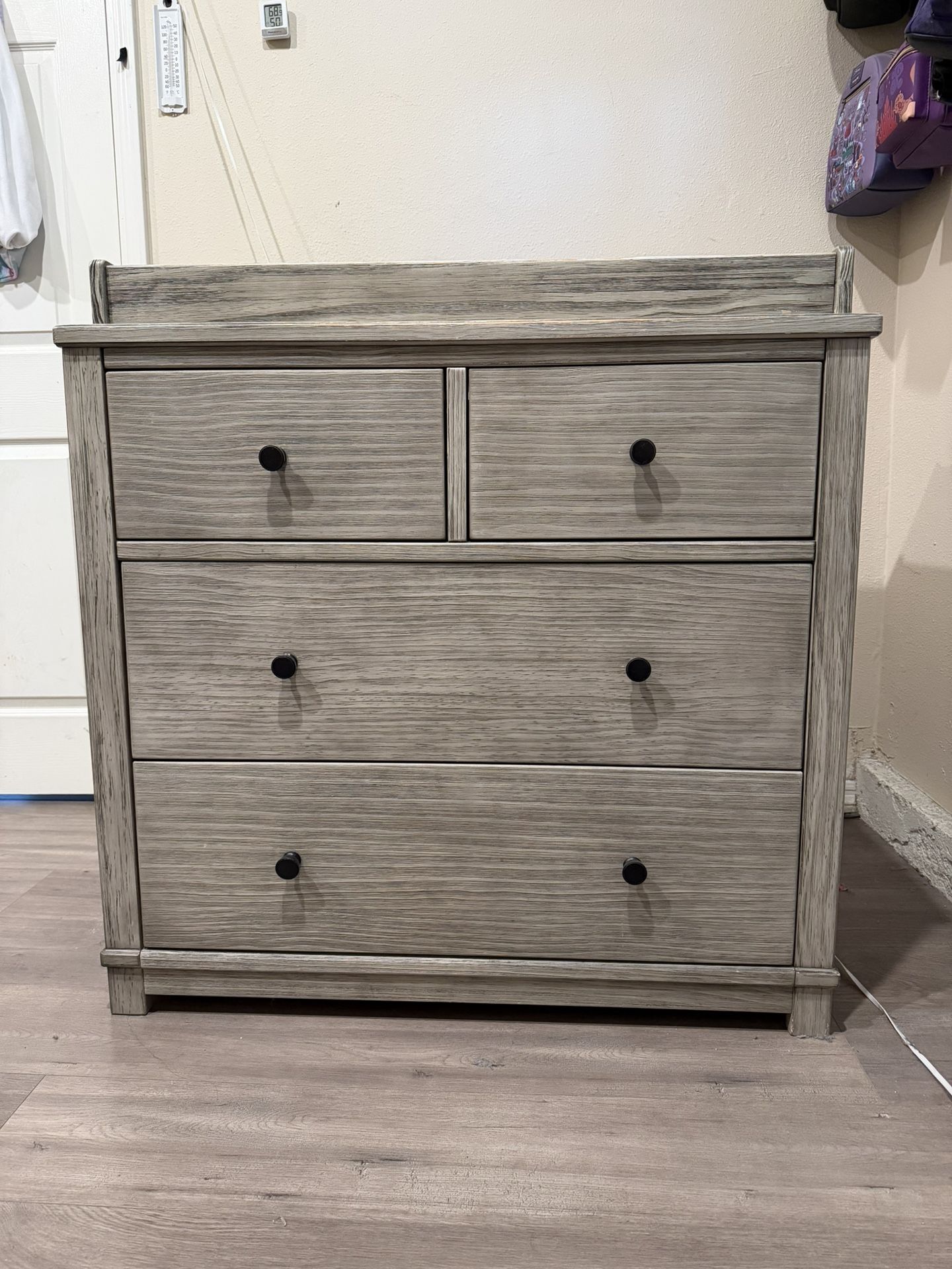 Used Baby changing table with 4 drawers. -good condition, some wood chipping around the top (Please see photos for reference) -top is removable if you want to convert it to a dresser