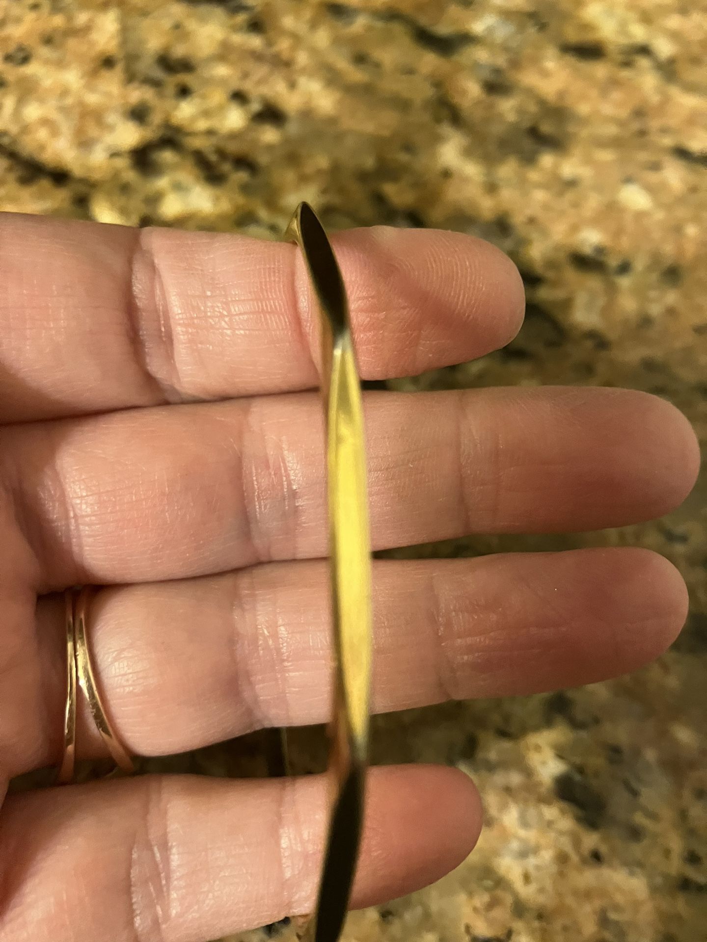 Gold plated round bangle/bracelet. Like new. . About 50 years old. Nice weight. Coin is for size comparison. Located between La Jolla and Santee. Can meet anywhere between.