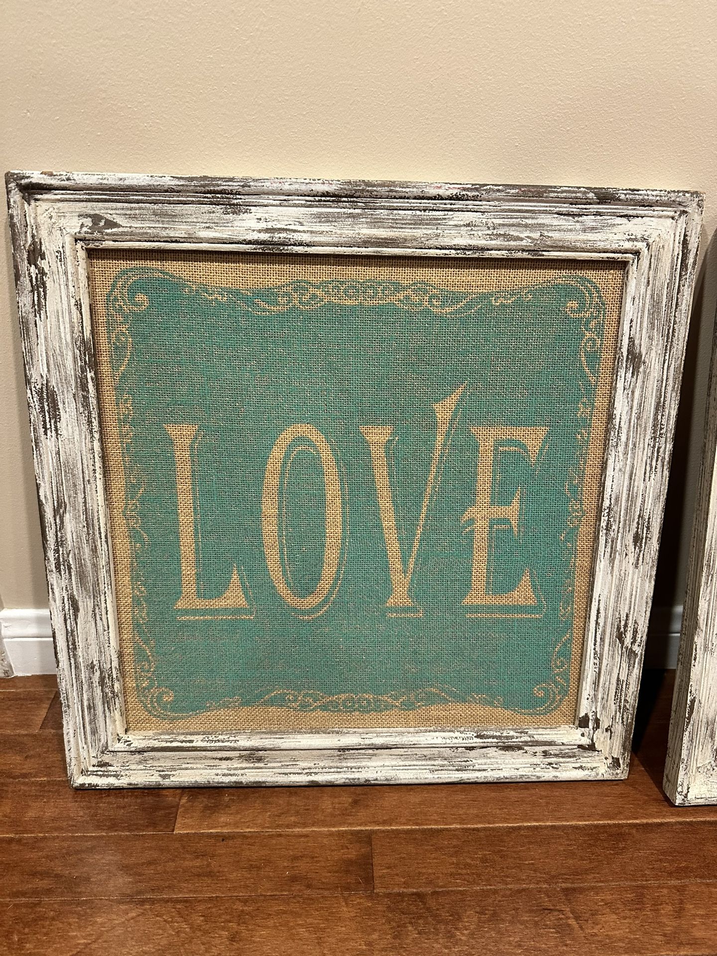 Love and Hope framed canvas art, 21x21, sold together for $30 or $15 separately