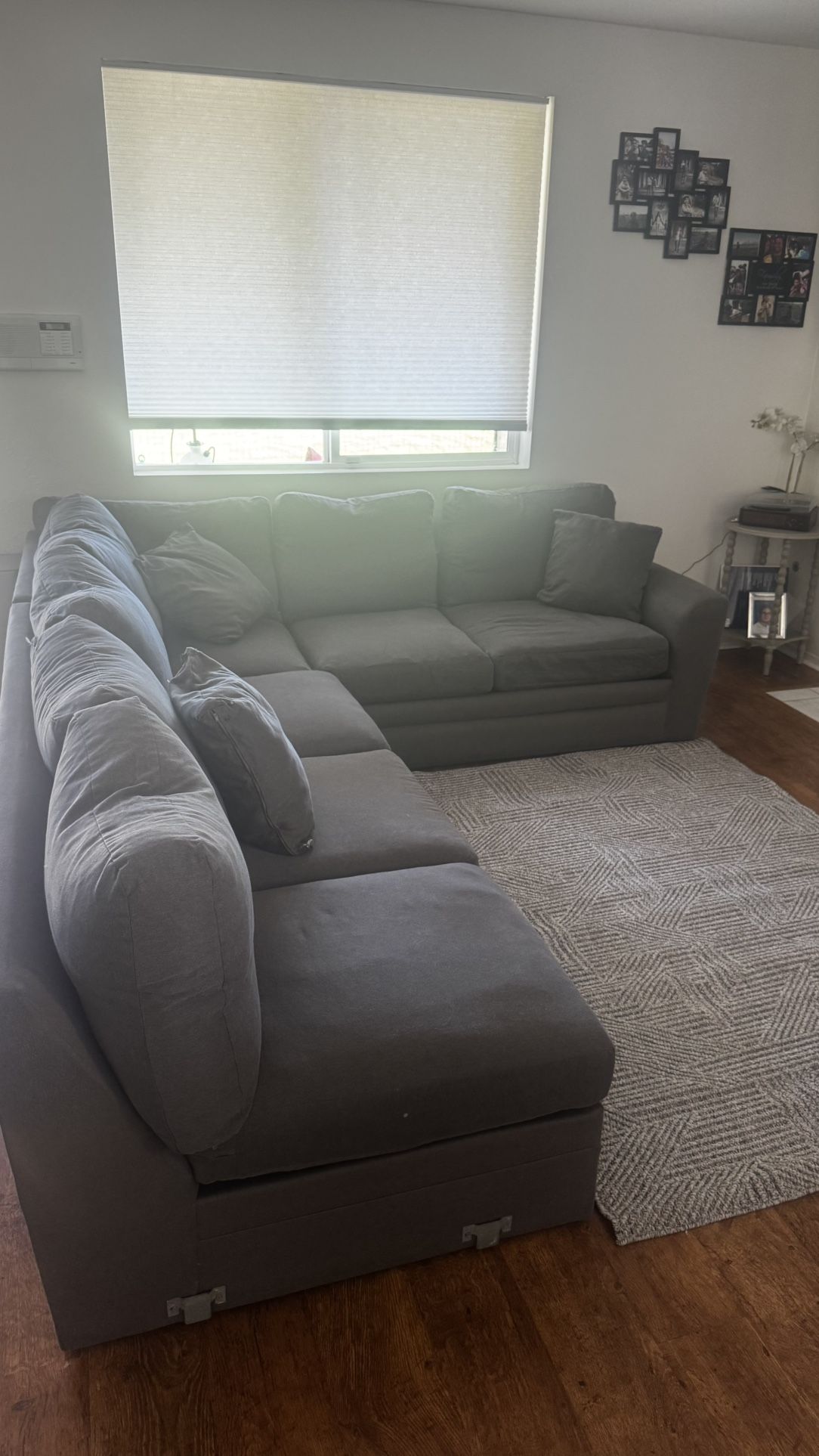 Gray Sectional Sofa Snuggle Down 173" 3 Piece with Left Arm Facing Chaise from “Living Spaces” Valued at $3,000