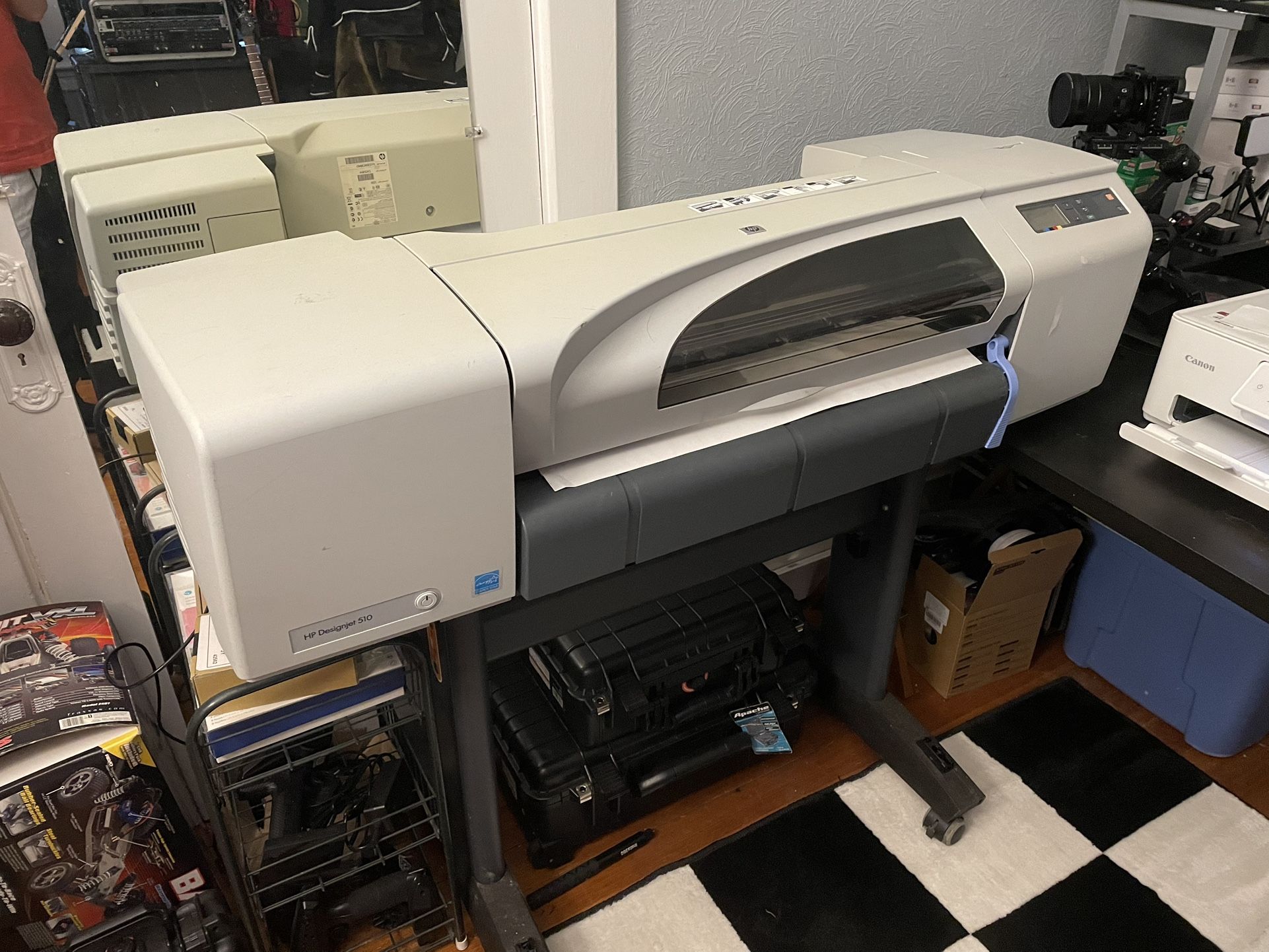 Wide format machine takes up to 24in rolls. CMYK. I never use it and the guy before me only used it a couple times, so despite its age, it’s practically new.
