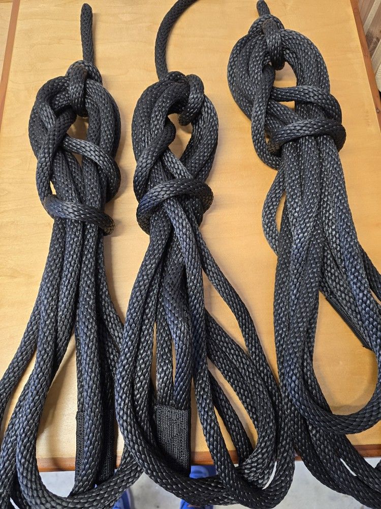 These are top quality West Marine dock lines. Size is 3/4 diameter, 25 feet. Black in color. Sturdy reinforced spliced eye on one end. 3 total lines included. Brand new, never used at all. Cost $60 each new plus tax, total new is about $200. Sell all for only $75