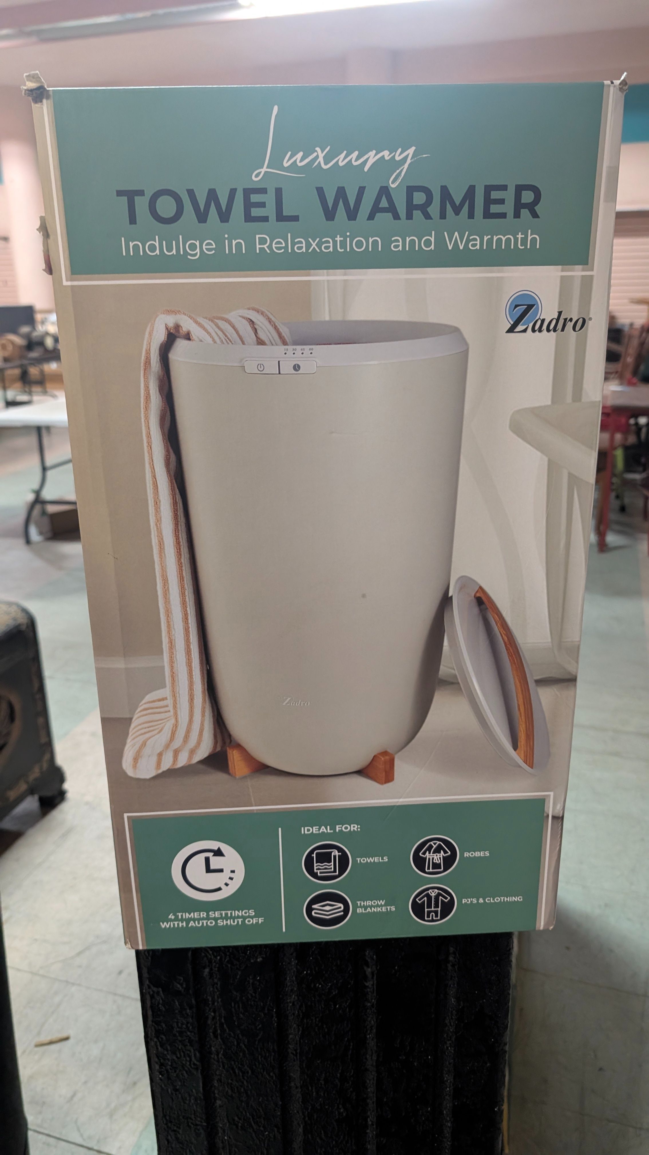 Zadro luxury freestanding electric towel warmer bucket-style heater. Spa-style bathroom appliance designed to warm towels, robes, and blankets evenly. New in original box with factory packaging; box shows light handling wear only. - I'm Located in Stockton I'm Also willing to trade / barter for any of the following: Cellphones Video Game Lots (Nintendo, Super Nintendo, N64, Sega) LEGO Pokemon Items Sports Cards Tools Computers Jewelry (Rings, or Necklaces) Disney Collectibles Vinyl Records Toys (Collectibles, 90s, Games, Vintage) Sports Collectibles Silver Tablets Shelves / Shelving Antiques Arcade / Skill Games Wall Art Chainsaws Landscaping Tools Mancave Items Retail Displays Autograph Items Sculptures / Statues Cast Iron Decor Pottery Yard Art Magazine Lots (LIFE, Sports Illustrated) Historical Items