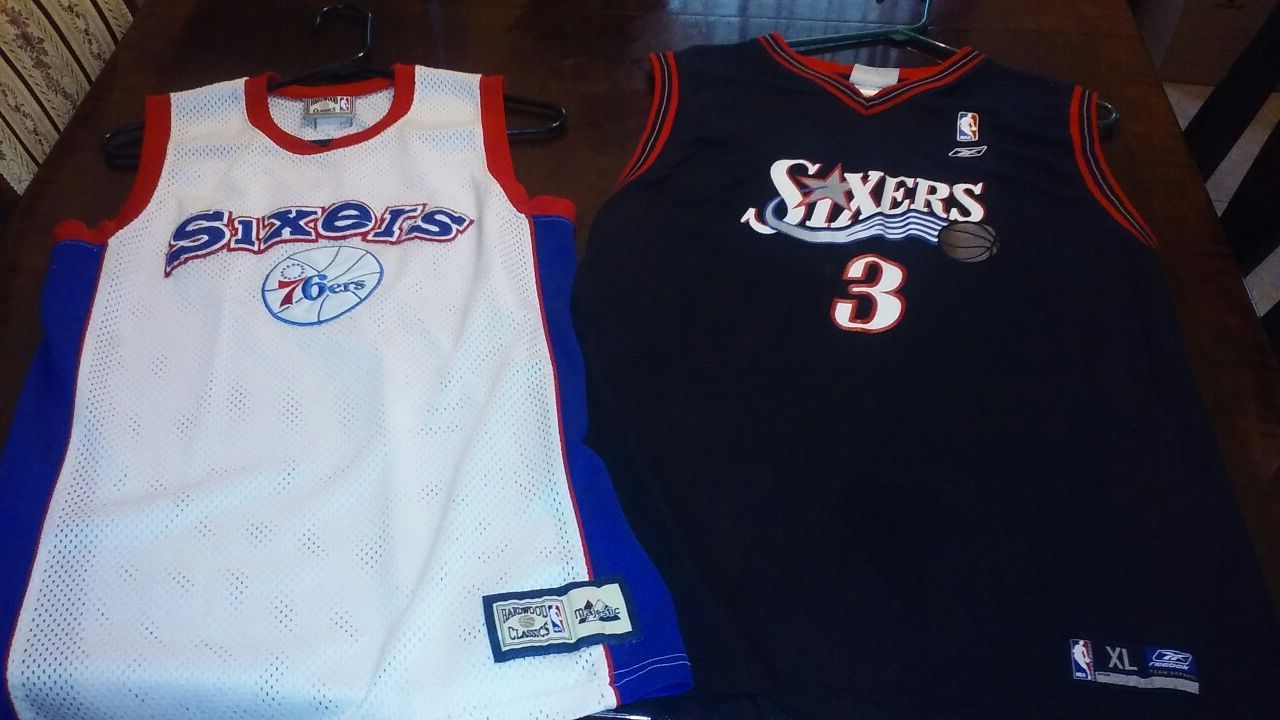 Authentic black Iverson Jersey used and faded sold separately or along with white 76sixers jersey....give me best offer