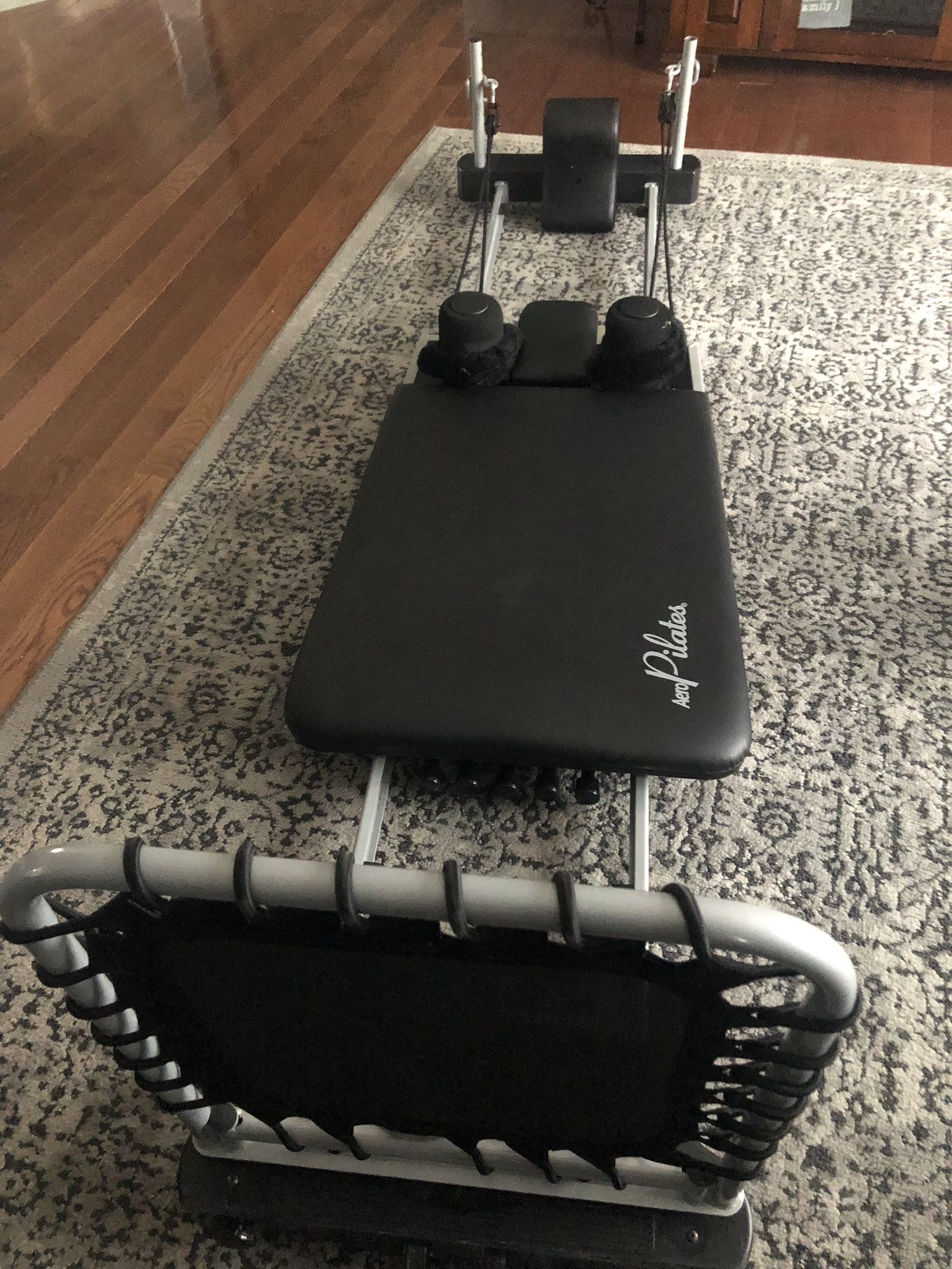 Aero Pilates machine. My mom bought it from QVC and never used it! In excellent condition. One black cap missing… shown in picture. Doesn’t affect how it works. I’m sure the company could send you a new one. Porch pick-up in Ramtown section of Howell.