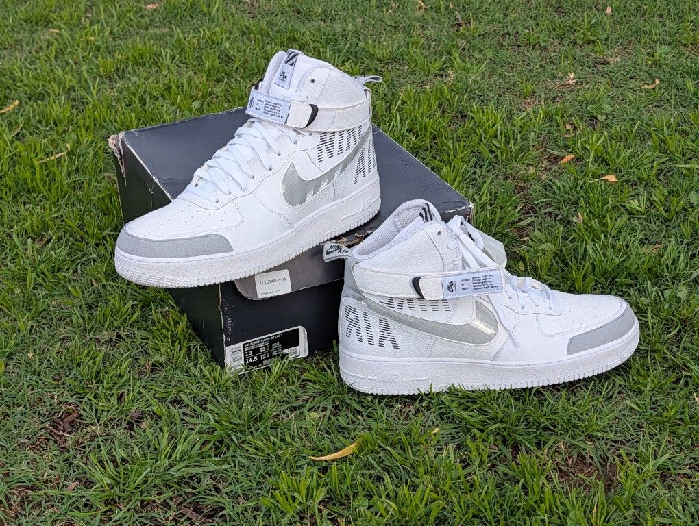 Step into a heavy-duty classic. Up for sale is a stunning, near-mint pair of Nike Air Force 1 High '07 LV8s in the highly sought-after "Under Construction" colorway. This isn't your standard triple-white AF1; it’s a rugged, industrial-inspired remix featuring unique textures and technical hits. Model: CQ0449-100 (White / Wolf Grey) Size: US Men's 13 (UK 12 / EUR 47.5) Condition: Very Good / Like New. These have been kept in incredible shape—outsoles are spotless, insoles still have the original stickers, and the leather is crisp with no major creasing. Semi-translucent "Grid" Swoosh. Industrial "NIKE AIR" stenciled branding on the heel. Durable concrete grey rubberized toe-cap overlay..Custom "Hazard" stripe tongue tags and technical text on the ankle straps. Original Nike Box Original tissue paper inserts Authentic (Verified by style code and materials) You don’t see this specific iteration often in this condition—especially in a Size 13. Perfect for collectors or anyone who wants a clean white sneaker with a bit of "utility" edge. 89th avenue and Cactus #NikeAirForce1 #AF1High #Sneakerhead #Size13 #NikeUnderConstruction #VNDS #Streetwear #UtilityStyle #RareSneakers #NikeCollector #GrailFits #WhiteSneakers #CQ0449100 #Hypebeast