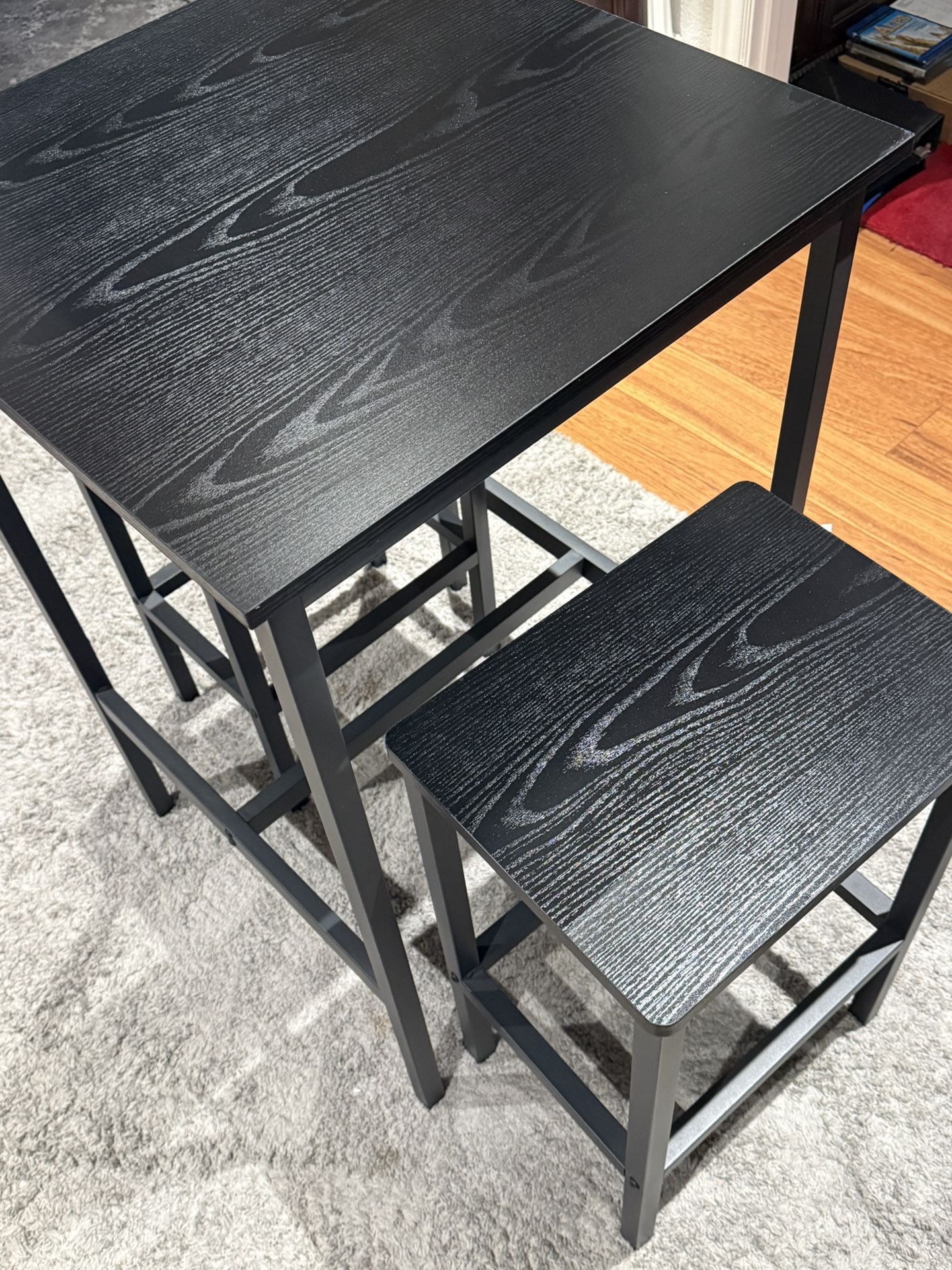 Small, space‑saving dining table with a 36” height and a compact 23 ¾” square top. The chairs tuck neatly underneath, making it perfect for apartments, studios, breakfast nooks, or any tight space. Sturdy, modern, and ideal for two. Located in UTC close to the mall, La Jolla, 92037.