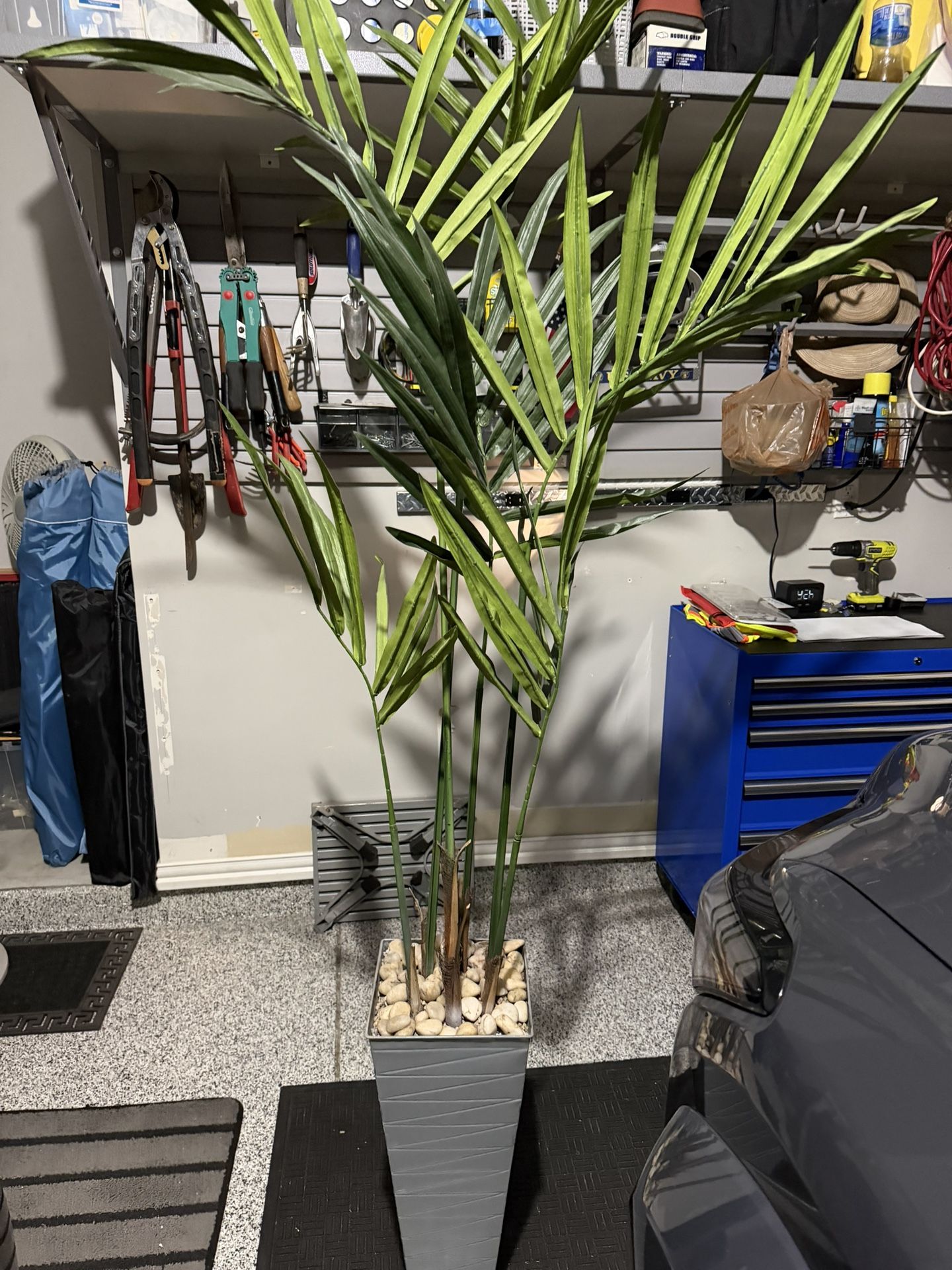 Really nice 8’ tall artificial tree. Has a couple dings at the base of the vase that aren’t very noticeable and don’t impact the stability of the base to sit steady. Ads a nice touch to indoor decor and interior design,