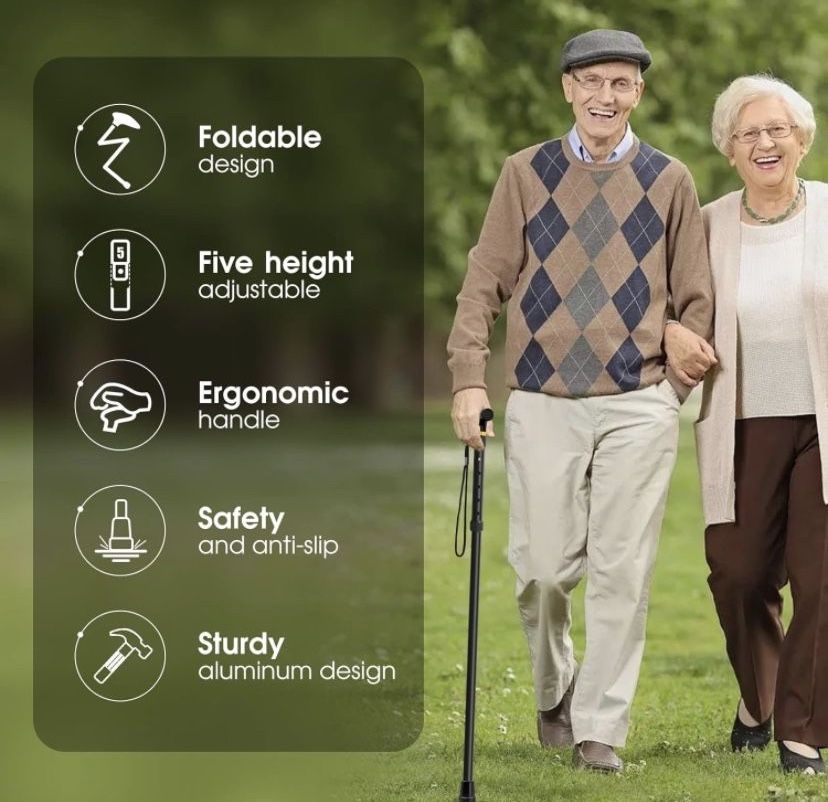 New Medical Easy Grip™ Height Adjustable Folding Cane/Walking Stick with Strap/Pouch- Compact, Portable, and Safe Walking Assistant- Non-Slip Grip Han